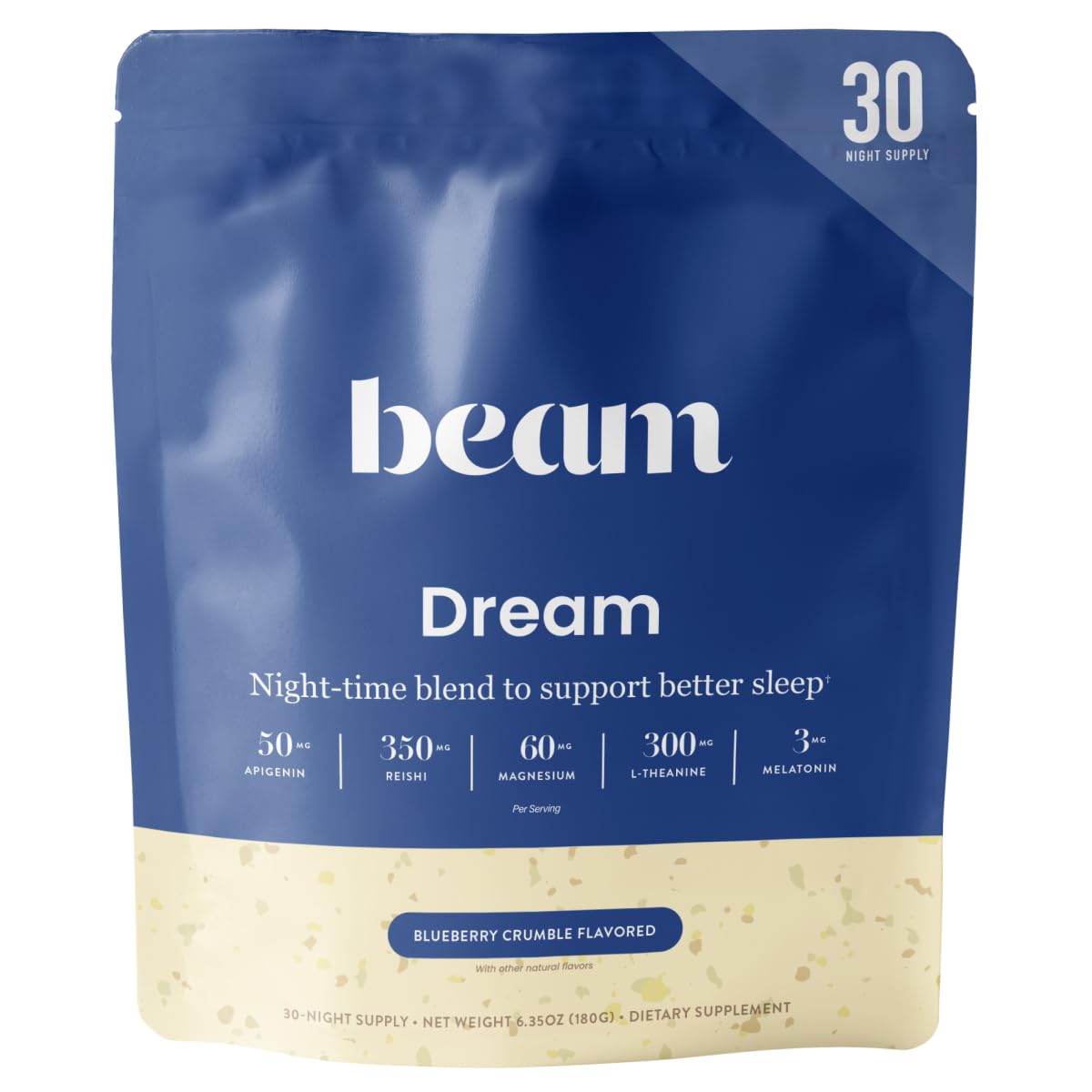 Indulge in a soothing bedtime ritual with Dream Powder Sleep Support Blend in delicious Blueberry Crumble flavor. This comforting hot cocoa blend is expertly crafted to support relaxation and healthy sleep rhythms. Formulated with a thoughtful mix of natural ingredients including magnesium, reishi, L-theanine, and melatonin, this nighttime beverage helps create a calming pre-sleep experience. Ideal for those seeking a peaceful evening routine, Dream Powder is part of the Beam wellness collection, trusted for its quality and innovation in functional drinks. Perfect for winding down after a long day, every serving brings flavor and functionality together in one warm cup.