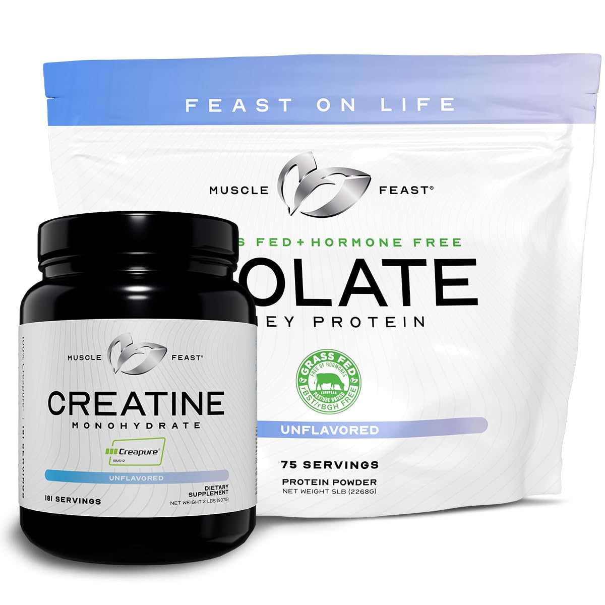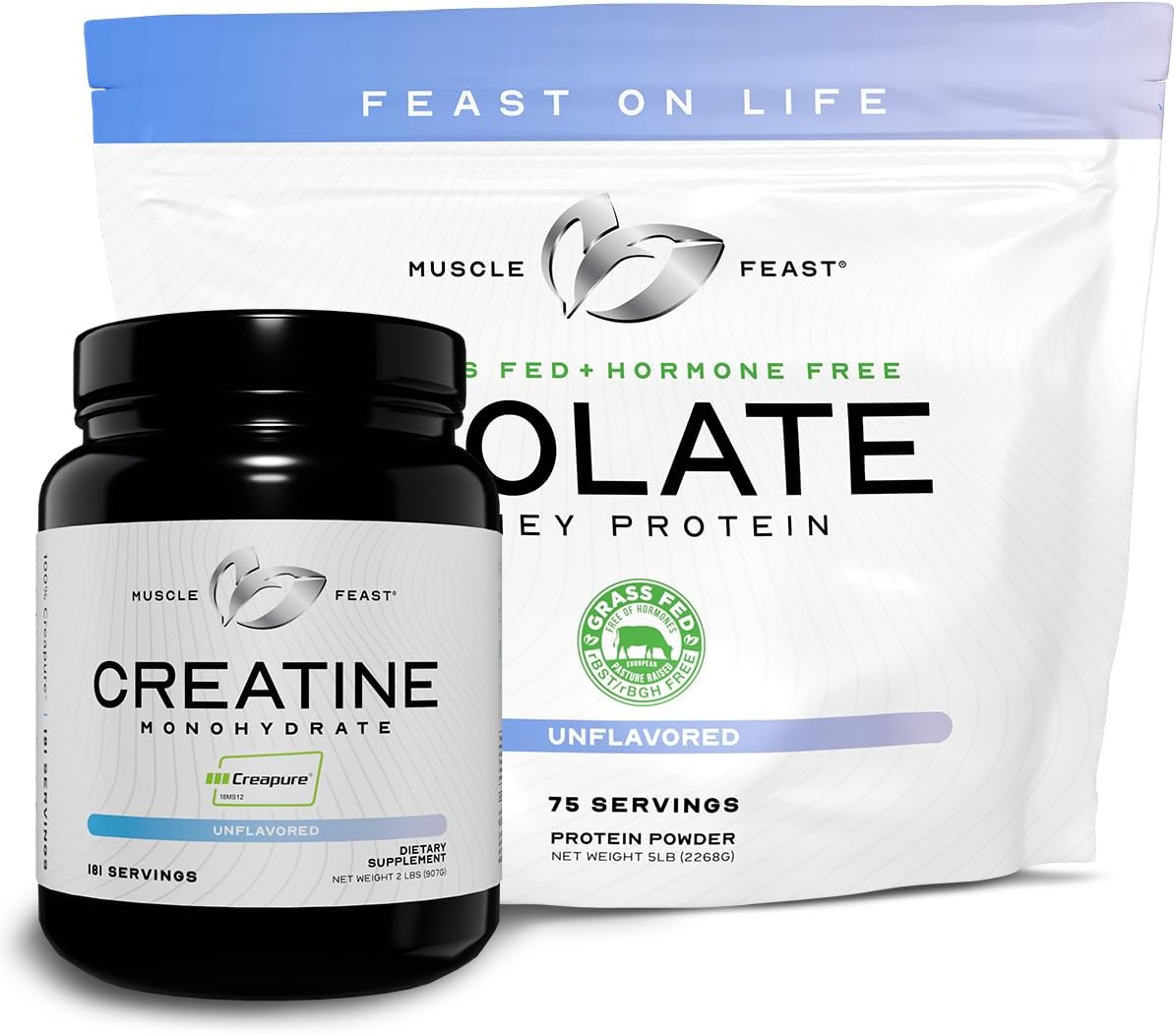 Unflavored Creatine & Whey Isolate bundle designed to support muscle recovery, strength, and performance with clean, high-quality ingredients.