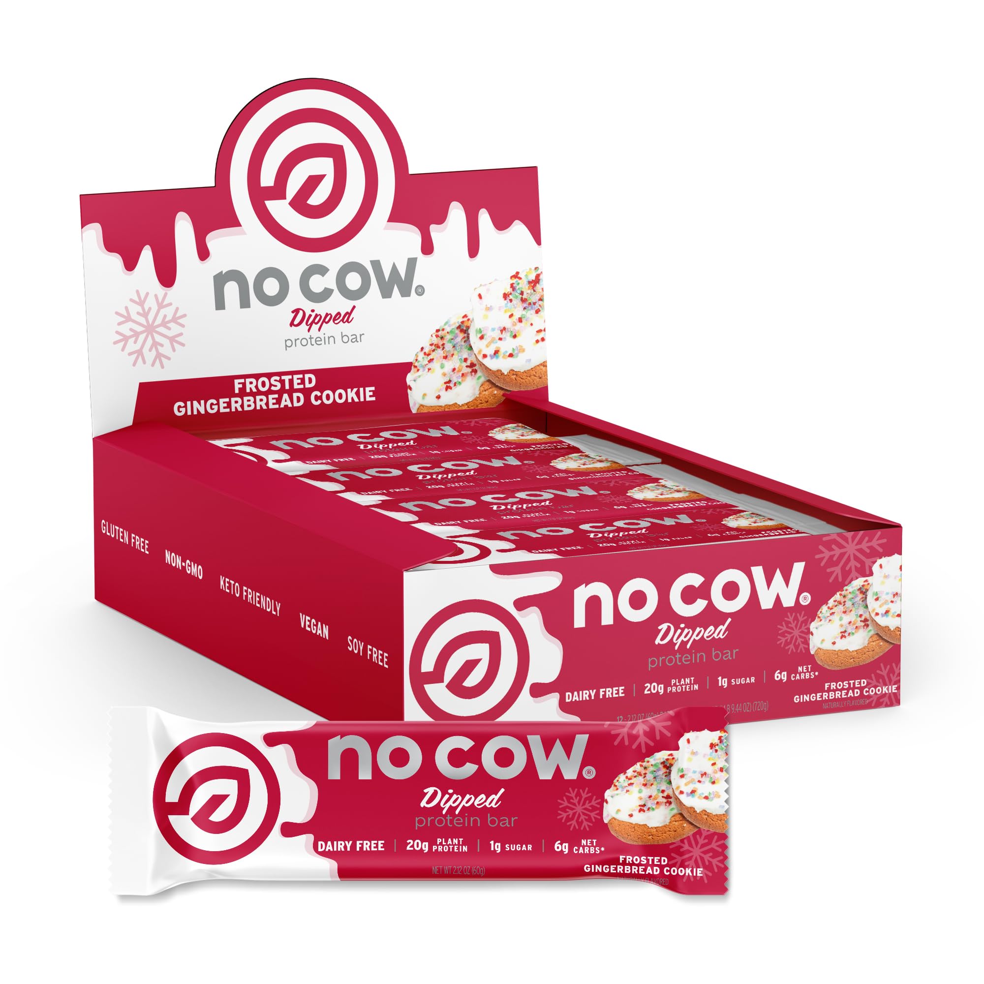 Enjoy the comforting taste of holiday spice anytime with these Frosted Gingerbread Cookie Plant Protein Bars. Each bar offers a delicious blend of warm gingerbread flavors, topped with a light layer of frosting and festive sprinkles — all without compromising your wellness goals. Packed with 20g of premium plant-based protein, just 1g of sugar, and an impressive 14g of fiber, these bars are crafted to support your active lifestyle and digestive health. Perfect for busy days or as a post-workout refuel, they are completely dairy-free, certified gluten-free, verified non-GMO, soy-free, kosher, and 100% vegan. Nourishment meets taste in this satisfying, on-the-go snack designed to align with diverse dietary preferences and wellness routines.