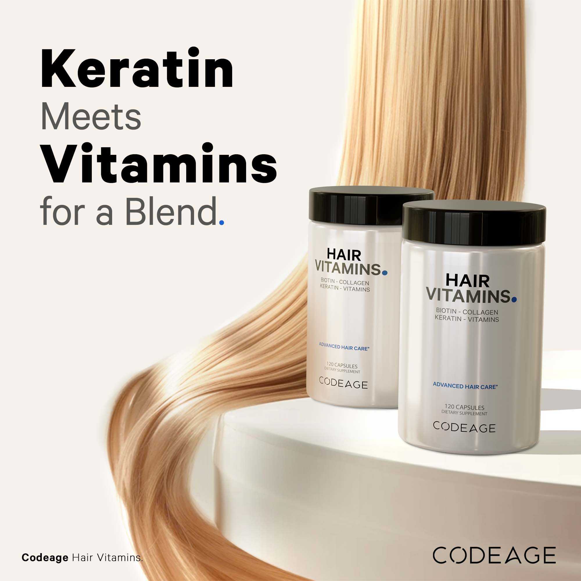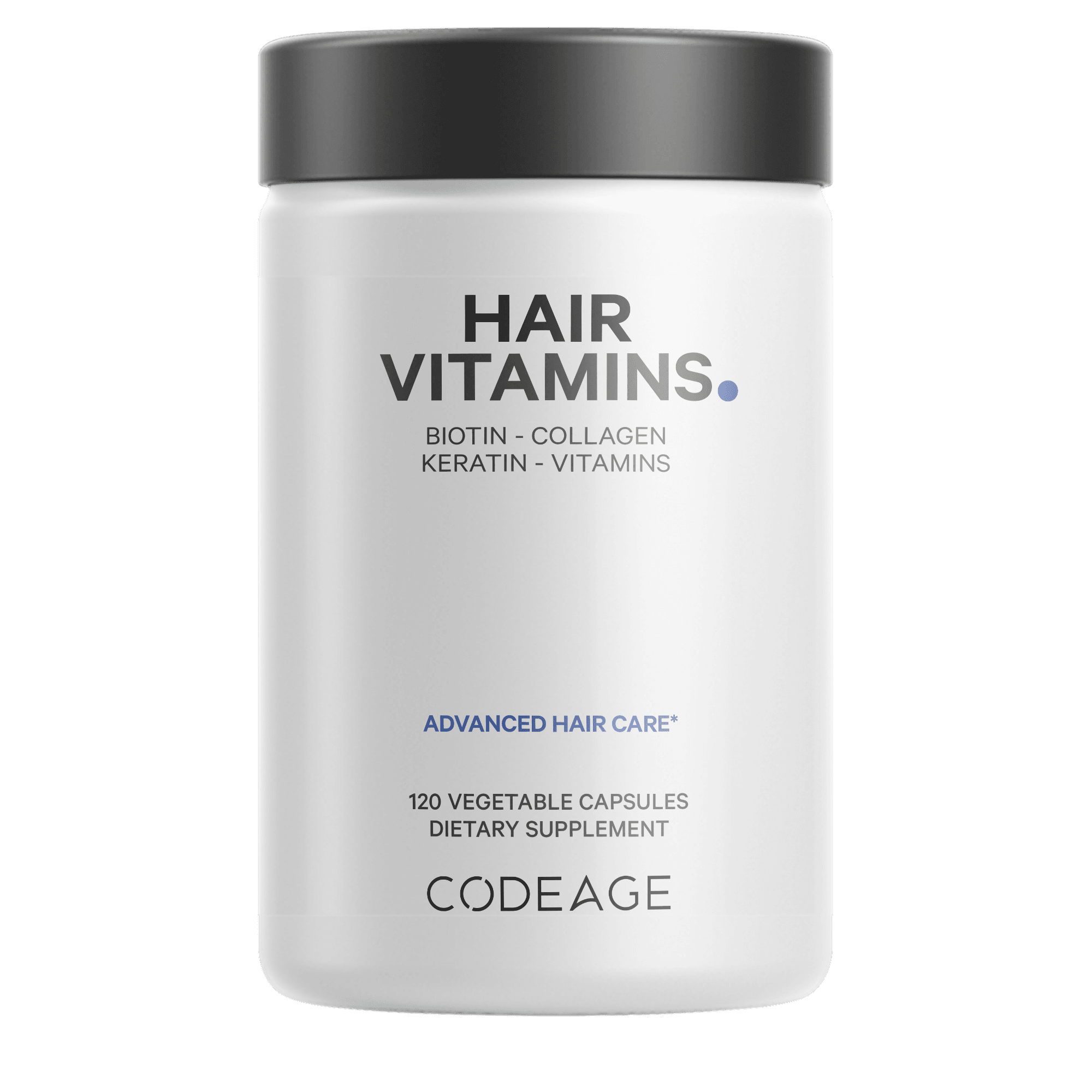 Support your hair care routine with Codeage Hair Support Supplement, a premium formula designed for men and women of all hair types and colors. Each serving delivers 10,000 mcg of biotin alongside marine collagen types I & III, keratin, and a wide spectrum of essential vitamins and nutrients. This advanced blend also includes hyaluronic acid, omega-3 from algae, probiotics, and plant-based extracts such as turmeric, amla berry, and ashwagandha.