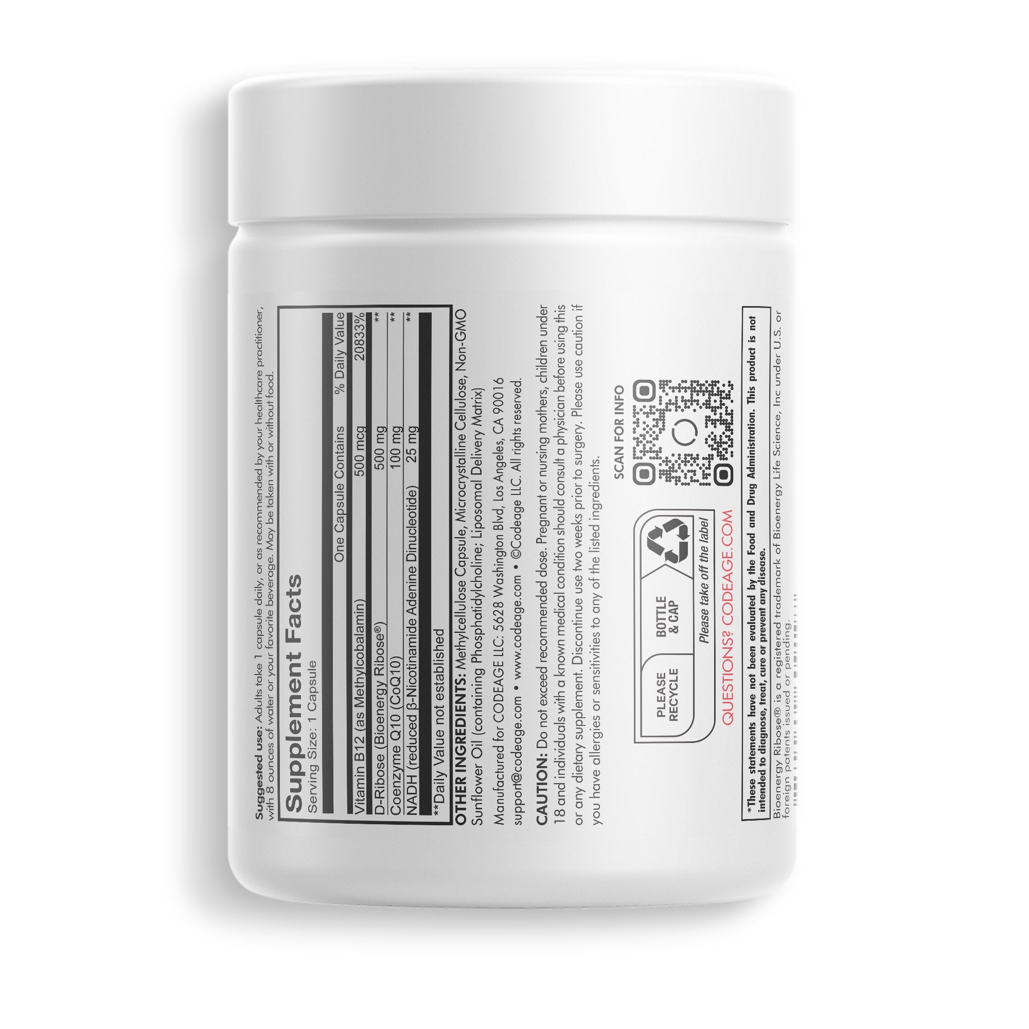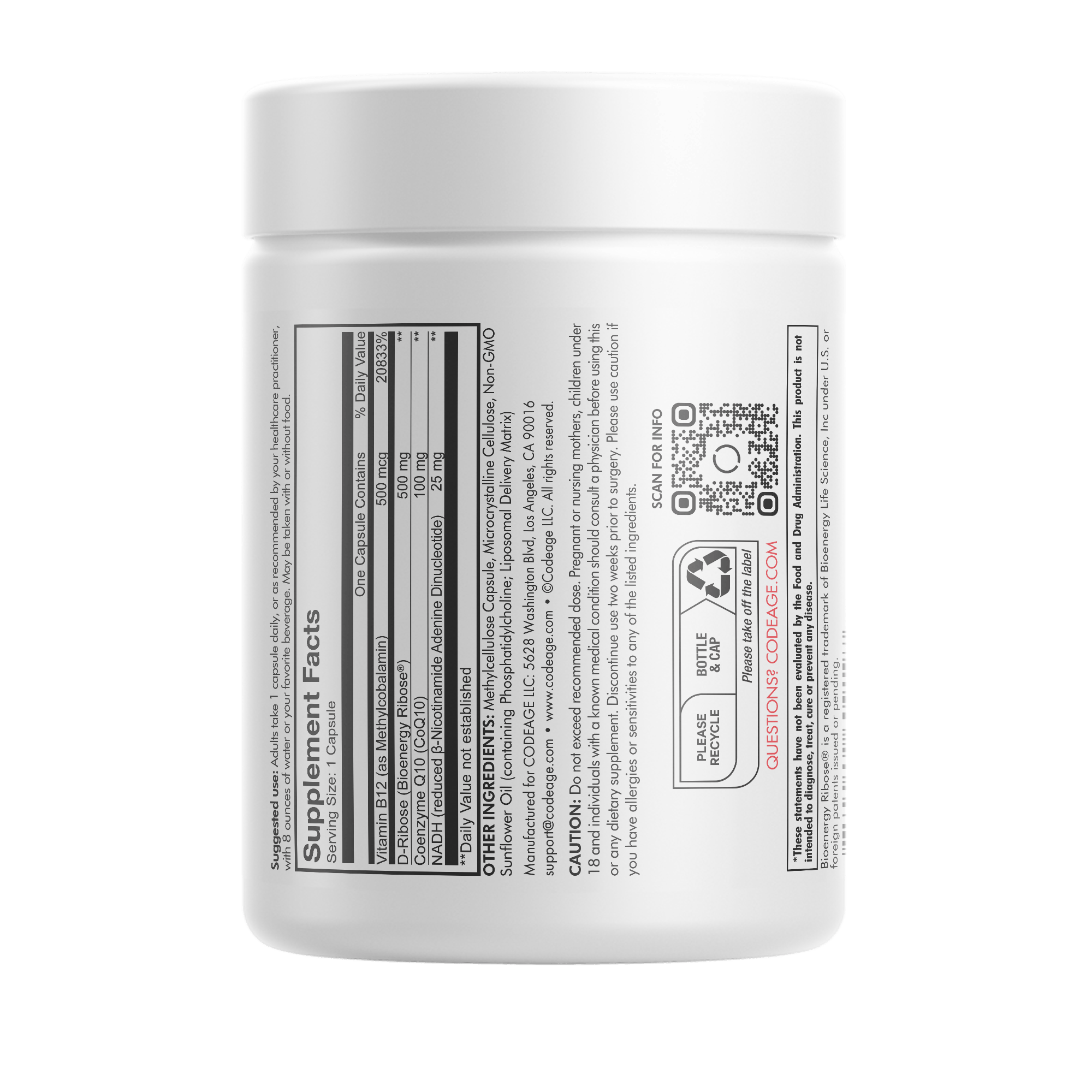 Support your daily wellness routine with Codeage Liposomal NADH+ Supplement, a scientifically formulated blend designed for individuals seeking cellular energy and cognitive support. This advanced formula combines NADH (β-Nicotinamide Adenine Dinucleotide), Coenzyme Q10, Vitamin B12 (as methylcobalamin), and Bioenergy Ribose®, a patented form of D-Ribose, to help fuel your body's natural processes.