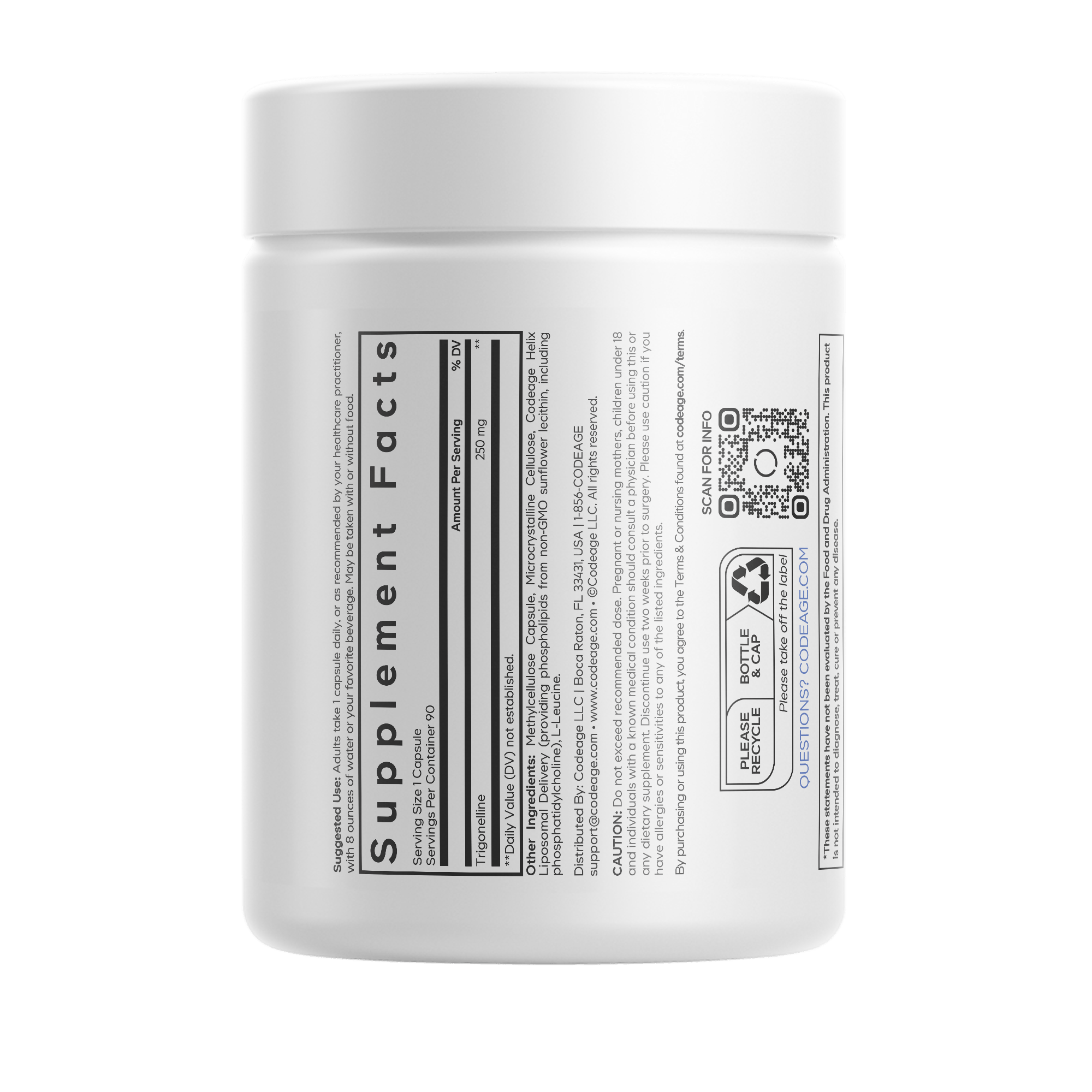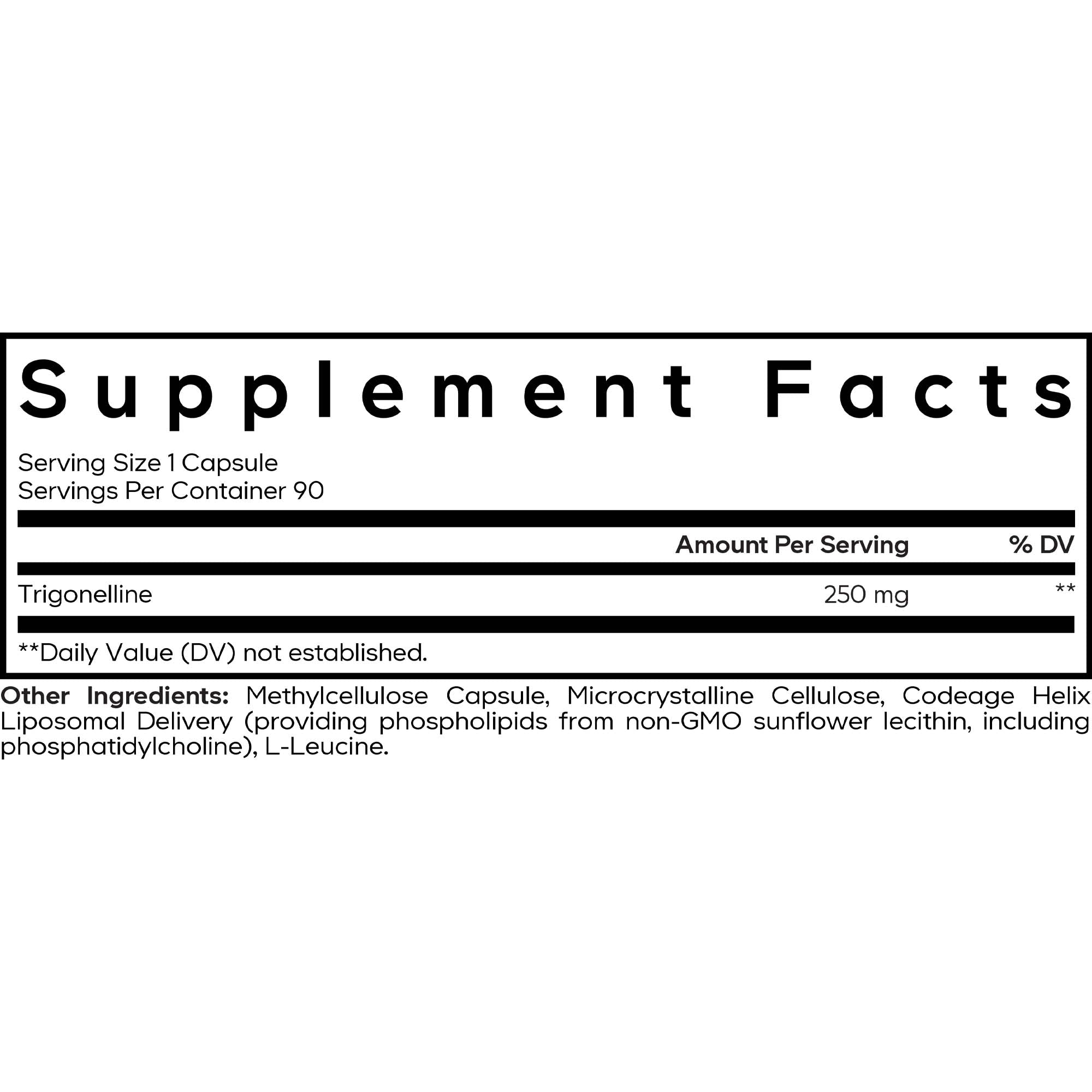 Manufactured in the USA in a cGMP-certified facility, Codeage Liposomal Trigonelline is crafted with global ingredients to ensure quality, purity, and consistency in every capsule.