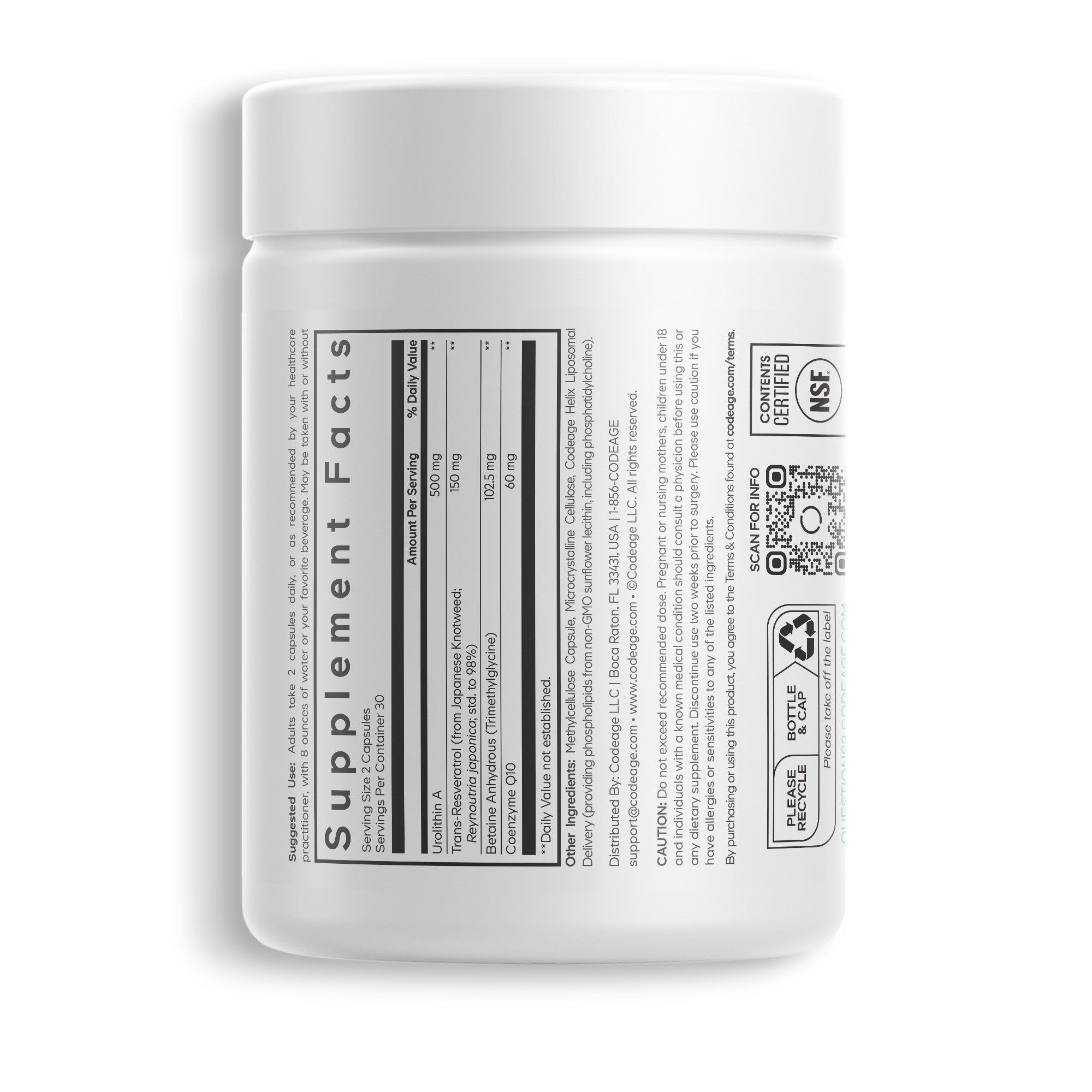 Codeage Liposomal Urolithin A Supplement with Resveratrol, Betaine & CoQ10 – 60 Vegan Capsules