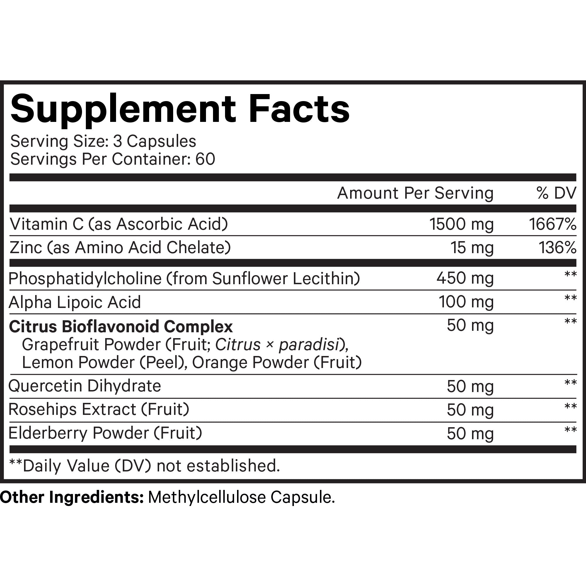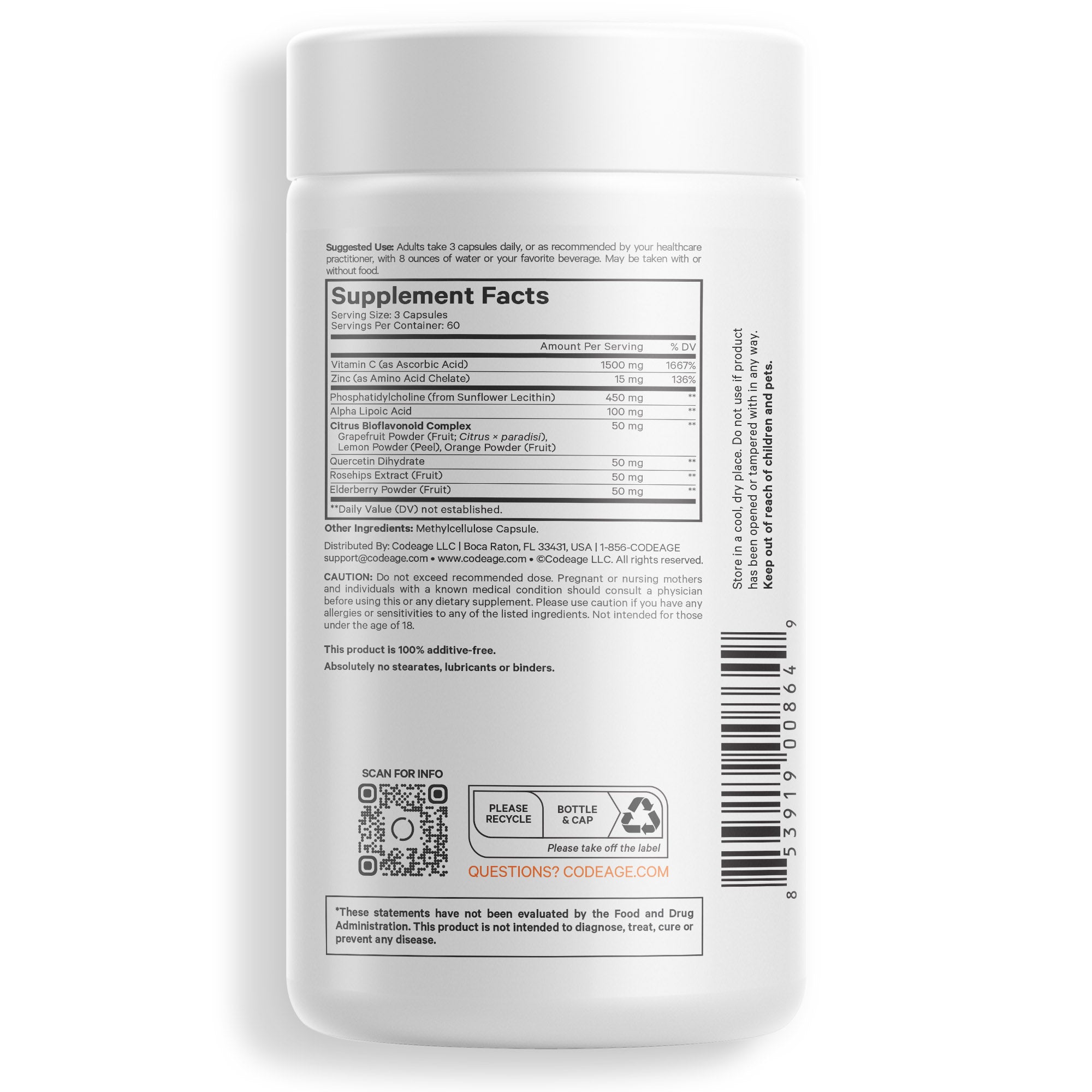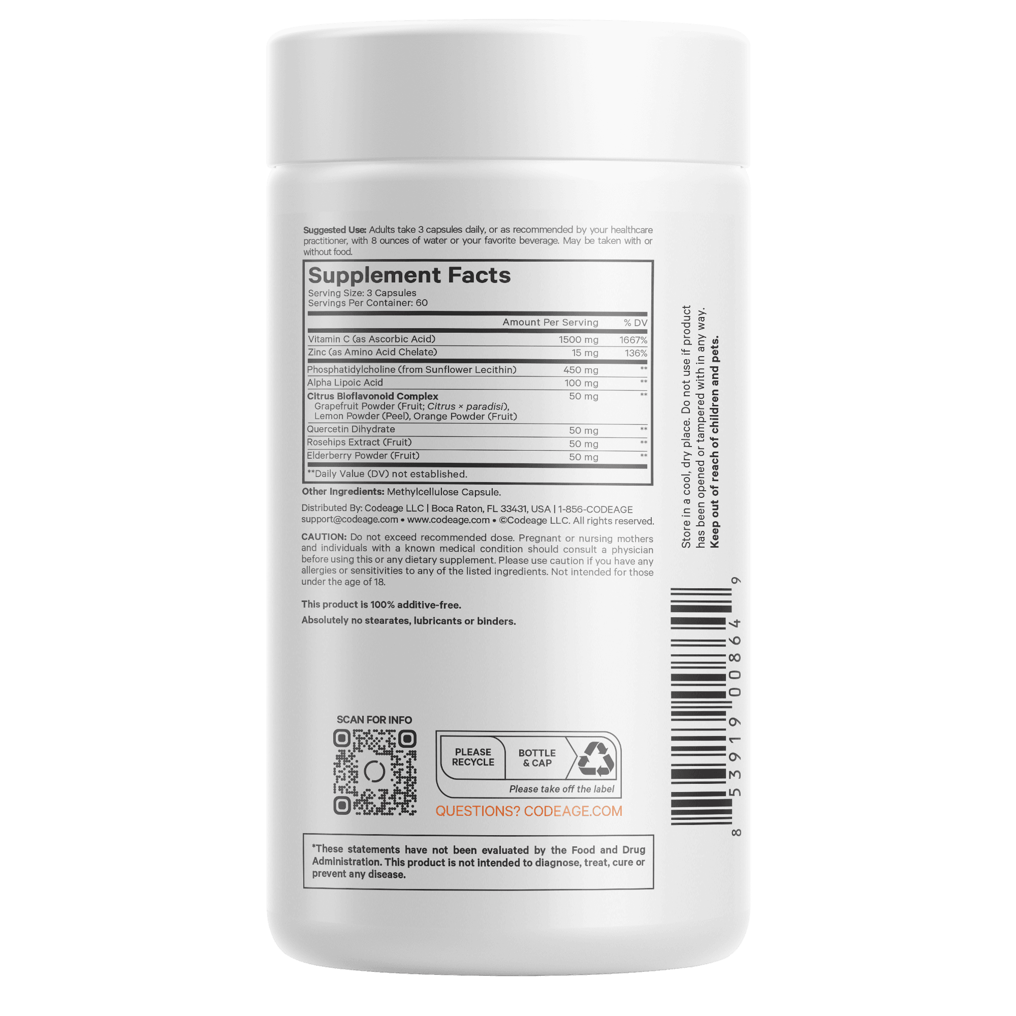 Support your daily wellness with Codeage Liposomal Vitamin C+, a premium vegan supplement delivering 1500 mg of vitamin C per serving. This advanced formula combines vitamin C with a citrus bioflavonoid complex sourced from grapefruit, lemon, and orange powders, along with elderberry, rosehip extract, and quercetin for an enhanced daily routine. Each serving also includes 15 mg of zinc and alpha lipoic acid to complement the formula.