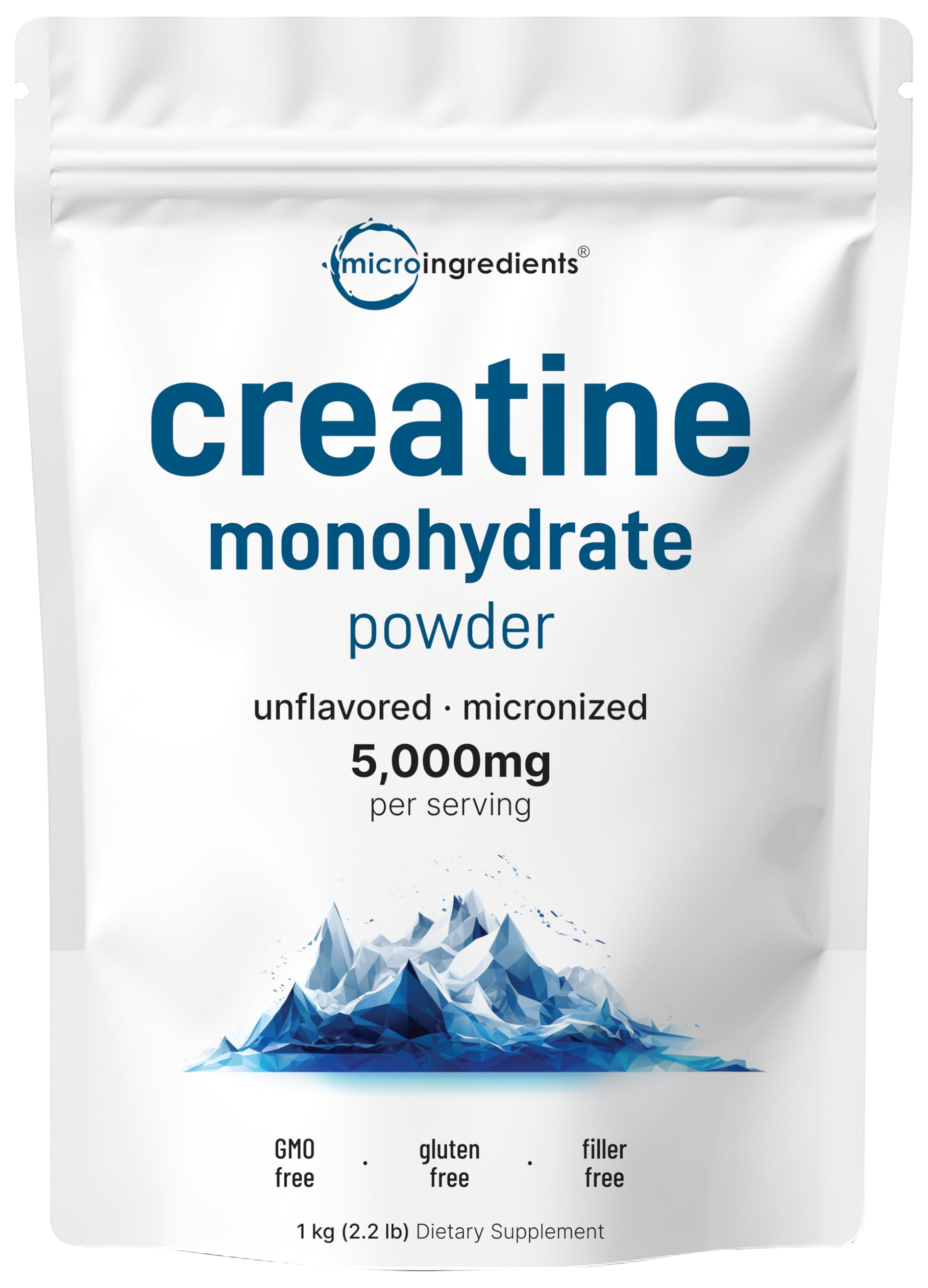 This creatine monohydrate powder provides 5000mg of pure micronized creatine per serving in a generous 1kg bag. It is unflavored and made without fillers, so you can easily mix it into your favorite pre-workout, post-workout, or other beverages. Designed for both men and women, it supports a wide range of fitness and performance goals., Creatine monohydrate is one of the most widely used and researched workout supplements, valued for its role in supporting strength, power, and endurance. The micronized form in this product is designed to dissolve easily, helping it blend smoothly into liquids. Creatine is naturally stored in muscles and the brain, and these stores can be used up quickly during intense activity. Adding supplemental creatine can help promote the replenishment of your body's natural creatine levels as part of your training routine., This powder is ideal for individuals focused on strength training, bodybuilding, or general fitness who want simple, single-ingredient support. It can be used by beginners starting a fitness journey or experienced athletes seeking to support performance, lean muscle goals, or endurance. Made without soy, dairy, gluten, and tree nuts, it fits a variety of dietary preferences, including keto and vegan lifestyles; consult your healthcare provider before use if you have any medical conditions.