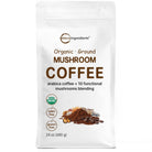 Micro Ingredients Organic 10-in-1 Ground Mushroom Coffee is a whole-ground gourmet blend that pairs premium Arabica coffee with a complex of ten functional mushrooms. This smooth medium roast offers classic coffee taste with lower caffeine, providing a more balanced way to enjoy your daily cup. Each 24-ounce pouch delivers a generous supply suitable for both single servings and full pots., The formula combines Arabica coffee with lion's mane, chaga, reishi, cordyceps, turkey tail, shiitake, maitake, mesima, wood ear, and oyster mushrooms. These mushrooms supply natural polyphenols, antioxidants, and adaptogens, helping support clean, sustained energy and focus compared to coffee alone. The mushroom blend is intended to help curb common caffeine-related jitters and crashes while adding superfood nutrients to your routine. Made without soy, dairy, gluten, fillers, preservatives, added flavors, or tree nuts, and crafted from non-GMO ingredients that are third-party lab tested for safety, purity, and potency., This mushroom coffee is ideal for coffee drinkers seeking a low-caffeine alternative that supports focus and everyday wellness. It suits those interested in functional mushrooms, general wellness, and more balanced daily energy. Brew it using a drip coffee maker, French press, or pour-over method as part of your morning or mid-day ritual.