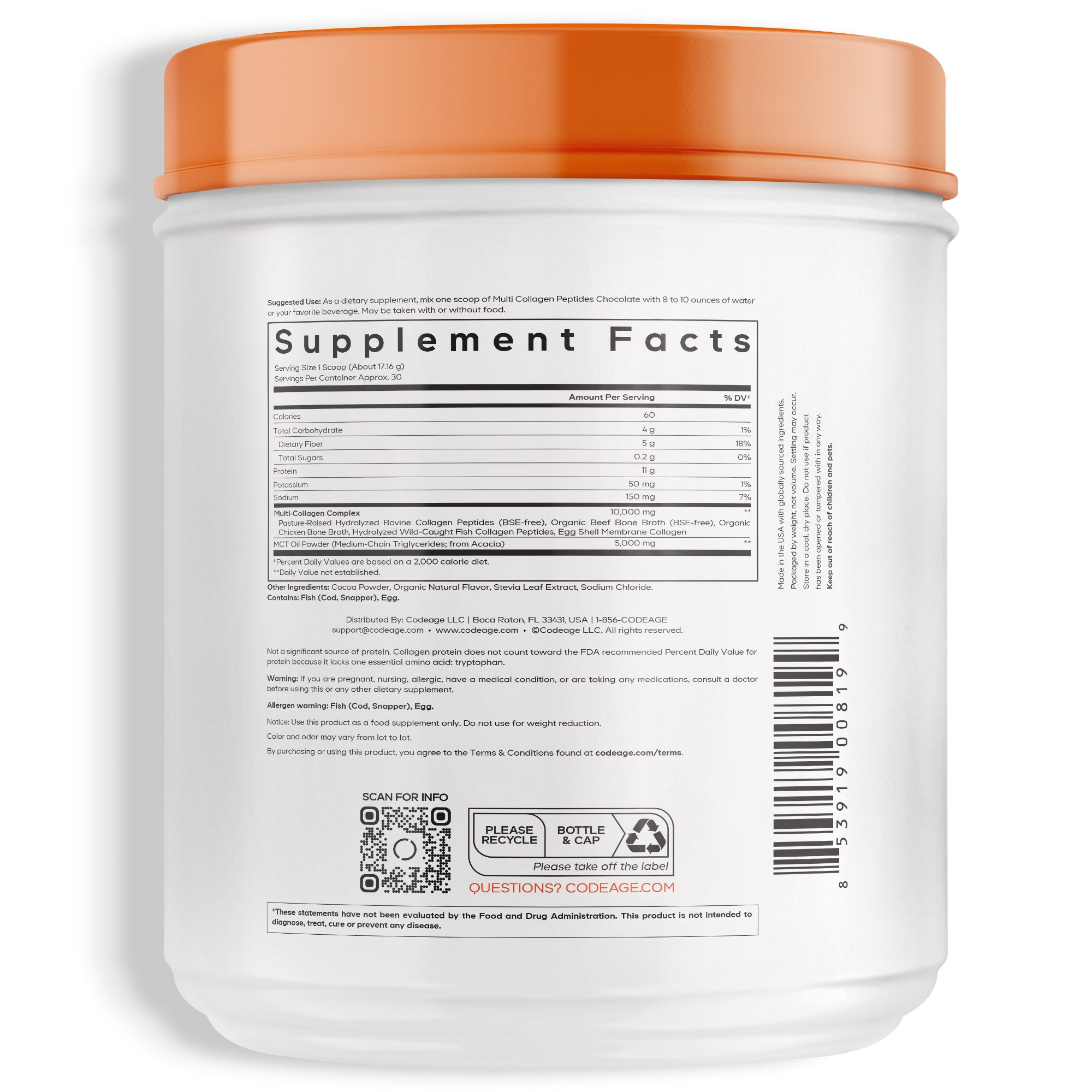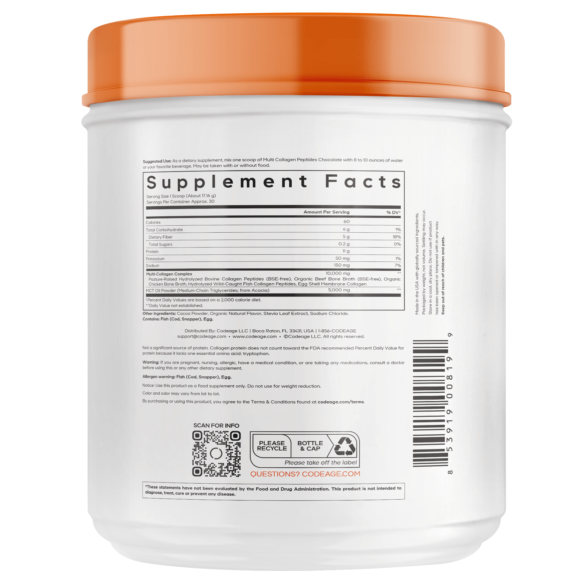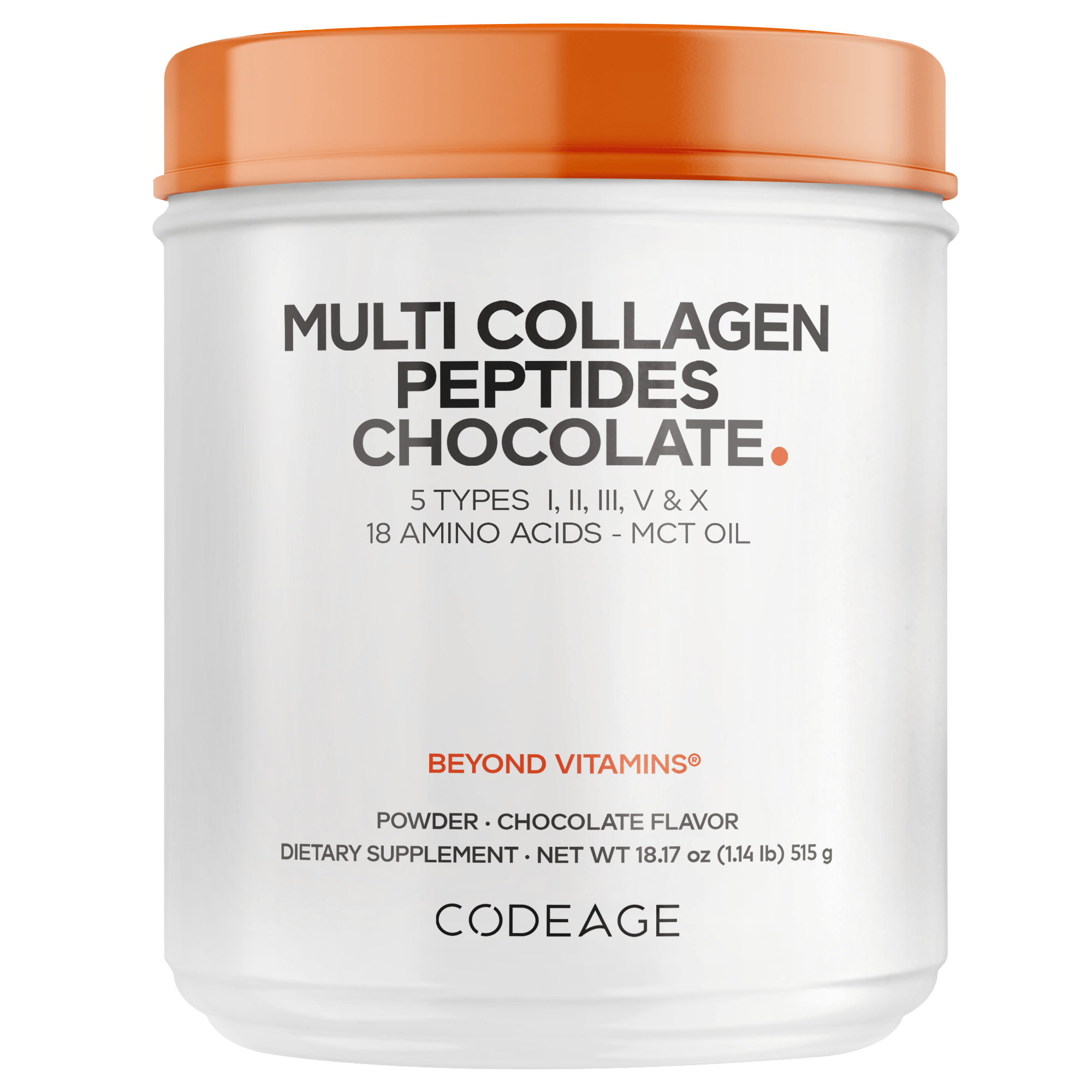 Support your wellness journey with Codeage Multi Collagen Peptides Protein Powder in a rich chocolate flavor. This premium formula blends five types of hydrolyzed collagen—Types I, II, III, V, and X—from high-quality food sources, including grass-fed bovine, wild-caught fish, chicken bone broth, and eggshell membrane. Enriched with MCT oil powder and offering 18 naturally occurring amino acids, it’s designed to complement a healthy lifestyle and support your daily nutrition goals.