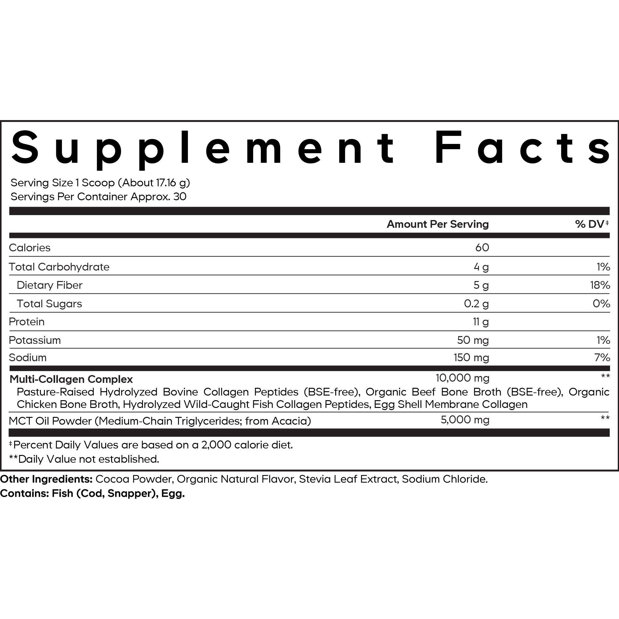 Multi Collagen Peptides Protein Powder with MCT Oil - Chocolate Flavor - 5 Collagen Types & 18 Amino Acids - Grass-Fed, Non-GMO, Keto & Paleo Friendly - 18.16 oz