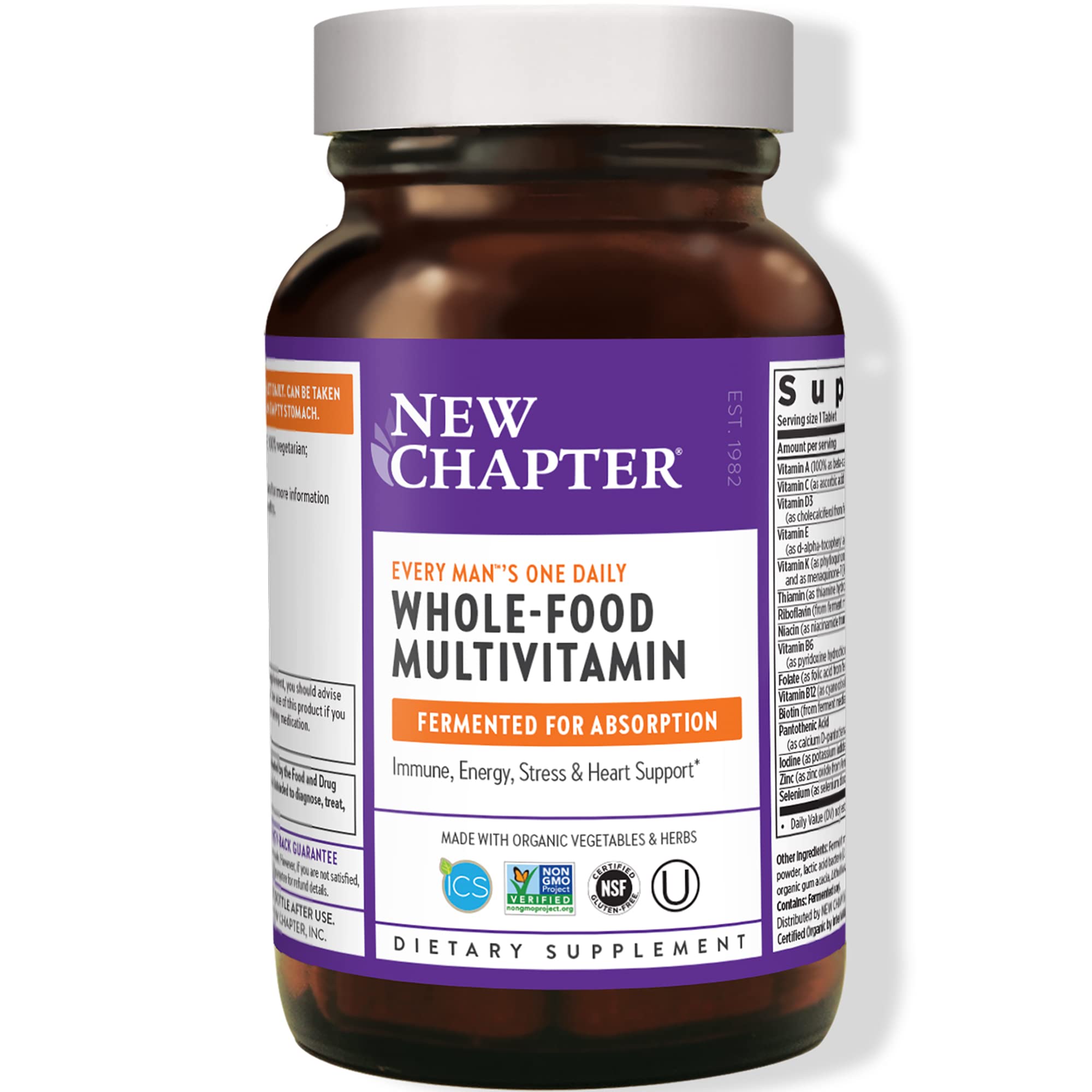 New Chapter Every Man's One Daily is a whole-food multivitamin designed specifically for men. This once-daily formula delivers a range of essential vitamins and minerals in a convenient tablet format. Each bottle provides 30 tablets to support daily nutritional needs., This multivitamin is formulated using whole-food ingredients, offering nutrients in a form derived from food sources. The once-daily design makes it simple to add to a regular wellness routine without complicated dosing. The tablet format allows for precise, consistent intake of the listed nutrients in each serving., Every Man's One Daily is suitable for adult men seeking an easy way to supplement their diet with a daily multivitamin. It is ideal for general wellness routines, busy lifestyles, and men who prefer a single tablet per day. For specific health conditions or if using medications, men should consult a healthcare professional before use.