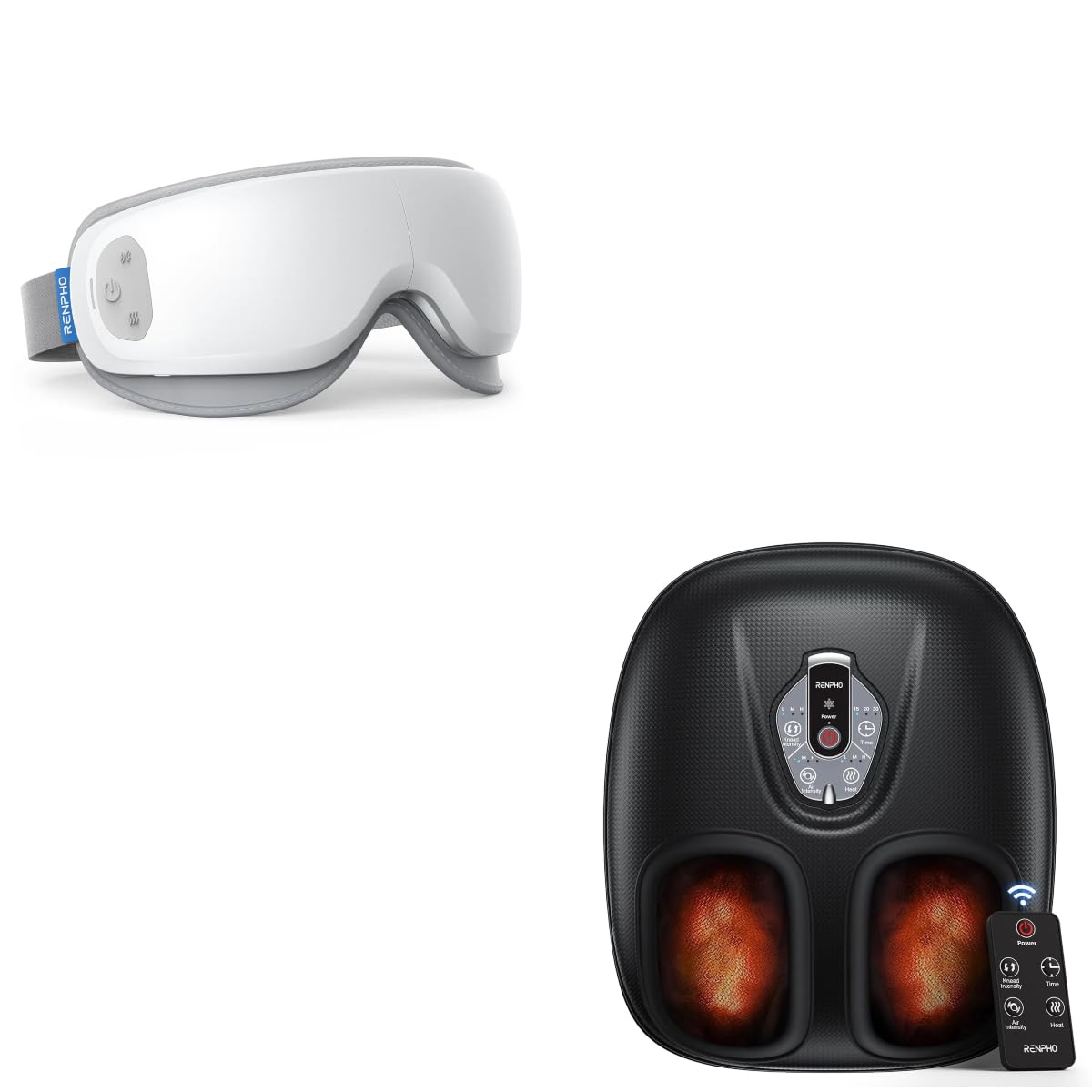 This RENPHO bundle combines a Foot Massager Machine with Heat and the Eyeris Zen Ultra-Quiet Eye Massager with Heat in one convenient set. The foot massager is designed to deliver soothing heated massage to your feet, while the eye massager focuses gentle warmth and massage around the eye area. Together, they create a home relaxation system for daily unwinding., The RENPHO foot massager uses a powered massage mechanism and integrated heat to surround your feet with consistent warmth and pressure. The Eyeris Zen eye massager applies a combination of massage and heating functions in an ultra-quiet design to promote a calm environment during use. Both devices are engineered for at-home use so you can enjoy spa-like comfort without leaving your living space., This set is suitable for adults seeking simple, device-based relaxation for tired feet and eye area strain after work, study, or screen time. It can appeal to general wellness users, people who spend long hours standing, and those looking for a comfortable way to unwind. Always follow the user manuals, and consult a healthcare professional before use if you have medical conditions, eye issues, or foot-related concerns.