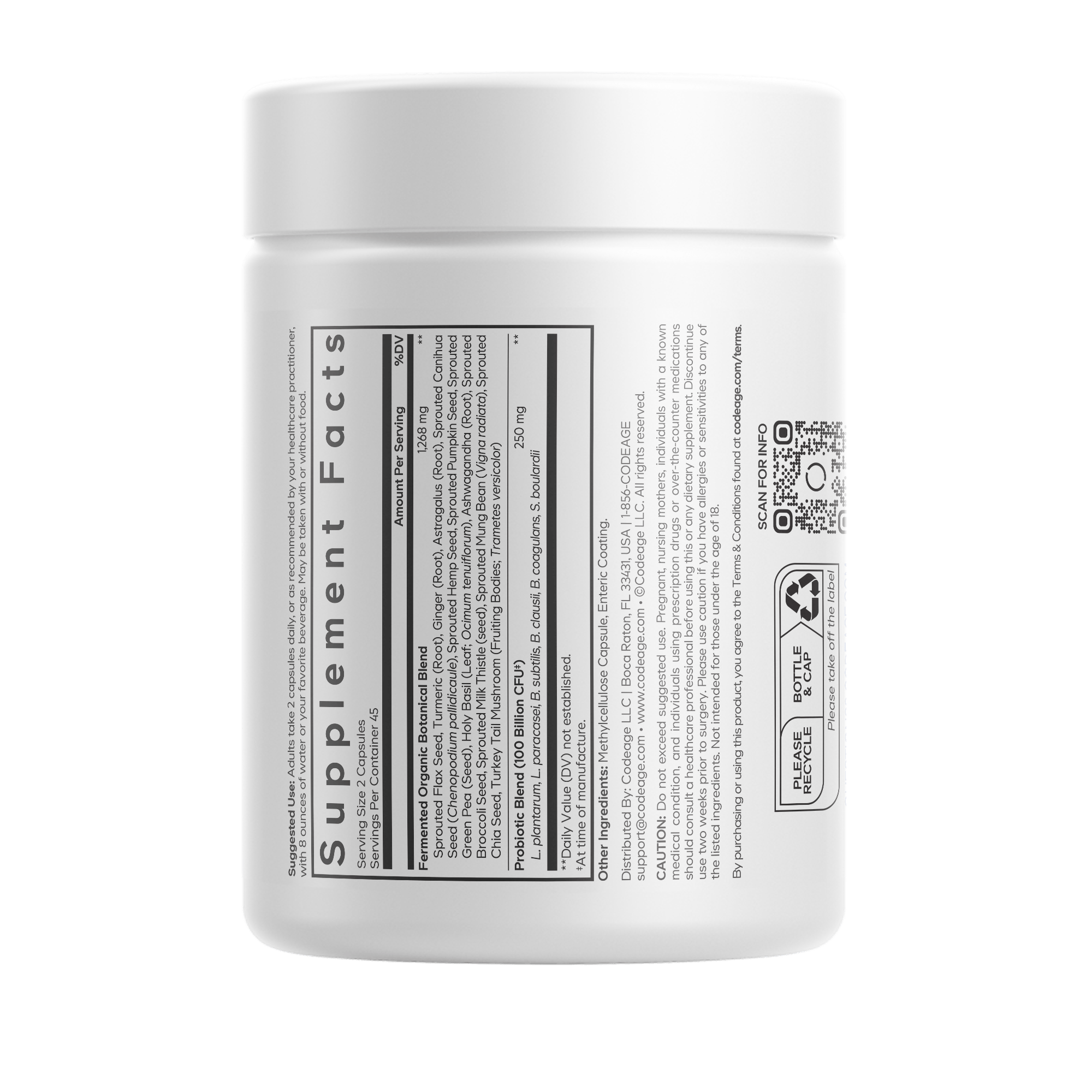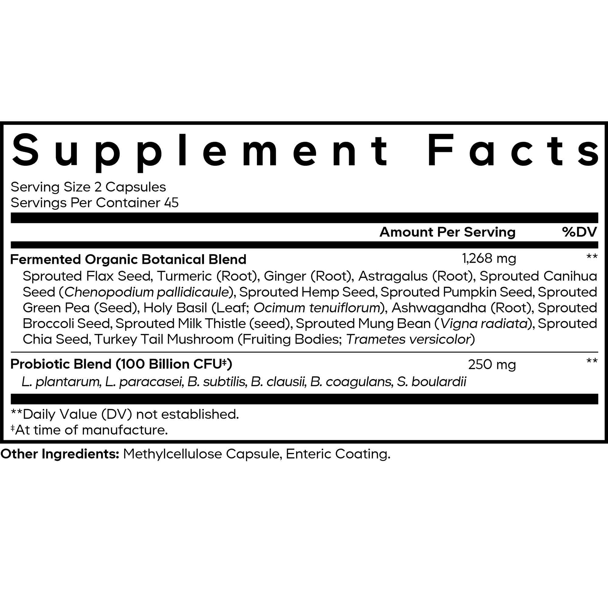 This advanced vegan-friendly formula also features an organic blend of fermented botanicals such as turmeric, ginger, holy basil, and turkey tail mushroom, known for their traditional wellness benefits. Crafted for quality and convenience, this supplement is dairy-free, soy-free, gluten-free, and keto-friendly – with no refrigeration required.