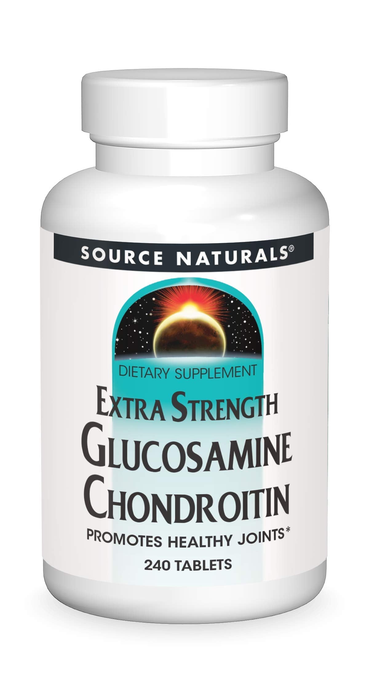 Source Naturals Extra Strength Glucosamine Chondroitin is a targeted joint health supplement formulated to support healthy joints and connective tissue. It combines glucosamine and chondroitin in an extra strength dosage, delivering 50% more potency than typical combination products. This convenient tablet formula is designed for those seeking comprehensive structural support in fewer tablets per day., Glucosamine is a key building block that helps lubricate joints and nourish cartilage and connective tissue, contributing to joint comfort and mobility. Chondroitin provides additional structural support through its high degree of interaction with collagen fibers, which are essential components of joint and connective tissue structure. Together, these ingredients supply clinically substantiated amounts of joint-supportive nutrients in just two tablets instead of three, making it easier to achieve an effective daily intake. This well-established combination helps maintain the integrity of joint tissues for everyday movement., This product is well-suited for adults who want to support joint health, including individuals focused on general wellness and those with active lifestyles. It is especially appropriate for people looking for an extra strength glucosamine and chondroitin formula that reduces pill count while maintaining clinically relevant levels. As with any supplement, individuals who are pregnant, nursing, taking medications, or have a medical condition should consult a healthcare professional before use.