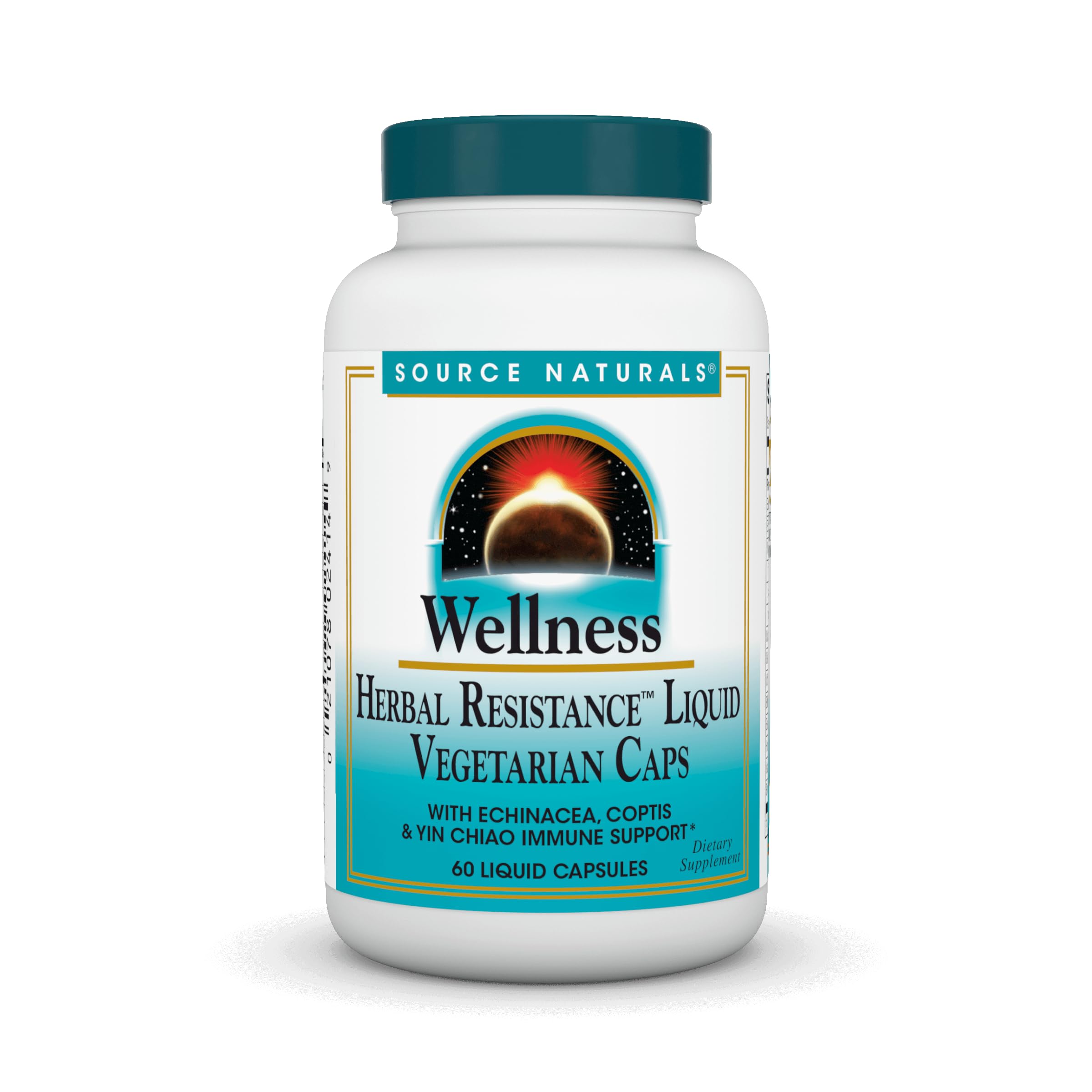 Source Naturals Wellness Herbal Resistance is an herbal supplement formulated to support your immune system. It features echinacea, coptis, and Yin Chiao, a valued traditional Chinese herbal complex, to help your body maintain a sense of balance and overall well-being. Each bottle provides 60 easy-to-take capsules for convenient daily use., This immune support formula works by combining time-honored botanicals known for their traditional roles in wellness. Echinacea has long been used in herbal practices to support natural defenses, while coptis is included for its traditional use in promoting well-being. Yin Chiao brings together several traditional Chinese herbs, reflecting a holistic approach that focuses on balance and seasonal support rather than a single isolated ingredient. Manufactured in the USA under current Good Manufacturing Practices (cGMPs), this product reflects Source Naturals' emphasis on quality and consistency., Wellness Herbal Resistance is suitable for adults seeking herbal support for general immune health and seasonal wellness. It can be a useful addition for those focused on general wellness, busy lifestyles, or frequent travel who want traditional herb-based support. Individuals with soy allergies should avoid this product due to its soy content, and anyone with existing medical conditions or on medication should consult a healthcare professional before use.