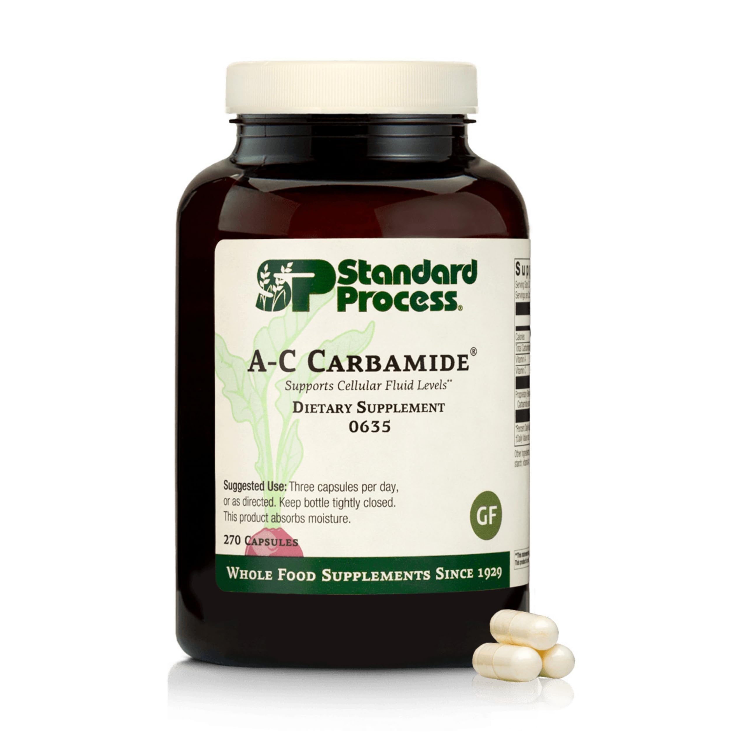 Standard Process A-C Carbamide is a gluten-free supplement with vitamin A, vitamin C, carbamide, and arrowroot flour in capsule form. It is designed to promote healthy fluid levels and support normal urinary system function.