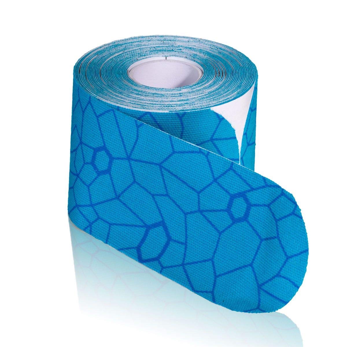 TheraBand Kinesiology Tape is a waterproof physio tape designed to provide targeted muscle and joint support. This standard roll format includes 2 inch by 10 inch strips that are precut for convenience and consistent sizing. The blue-on-blue tape is suitable for use during daily activities, exercise, and sports where flexible support is desired., The tape features XactStretch application indicators, a visual guide printed on the tape surface that helps users apply consistent stretch each time. By following these built-in indicators, you can more easily match recommended tension levels without guesswork. The elastic, breathable material allows for natural movement while maintaining adhesion, even during sweating or exposure to water. Precut strips reduce preparation time and simplify application for common taping patterns., This kinesiology tape is ideal for active individuals, athletes, and anyone seeking additional support for muscles and joints during movement. It can be used in running, strength training, and general fitness routines where flexible, non-restrictive support is preferred. For best results, follow application guidelines and discontinue use if skin irritation occurs.