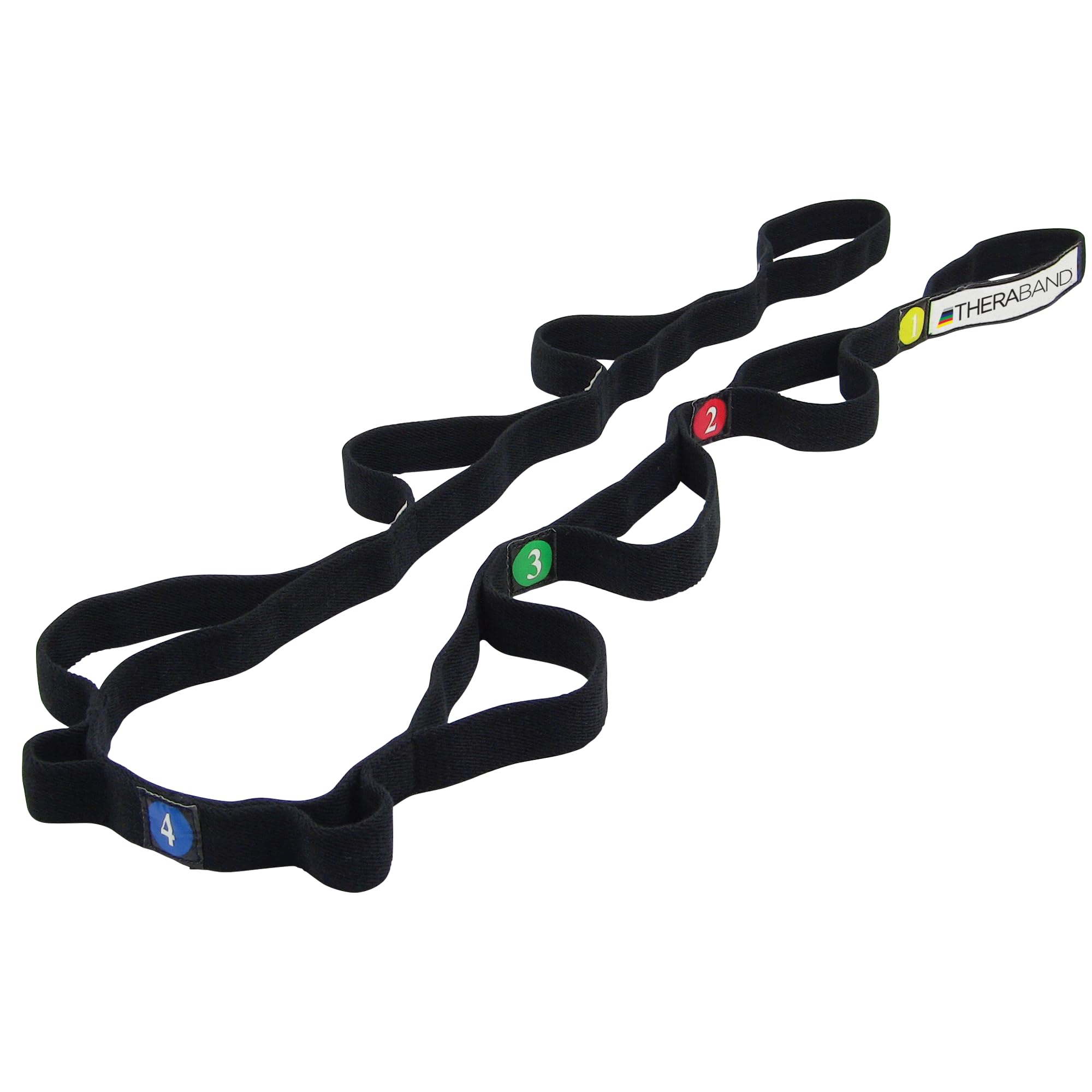 THERABAND Stretch Strap is an elastic stretching tool designed to help improve flexibility and increase range of motion. Measuring 58 inches long and 1 inch wide, it enables users to perform dynamic stretches without a partner for more effective warm-ups and muscle performance. The strap is suitable for athletes, dancers, and anyone looking to enhance flexibility safely and consistently., This stretch strap features both small and large loops that allow users to securely hold positions and maintain proper form during stretching. The elastic material stretches to an ideal length and then resists further stretching, helping provide controlled tension for targeted flexibility work. Toe loops support specific stretches for the foot area, including use for plantar fascia and heel-focused routines, while larger loops facilitate hamstring, quadriceps, and lower back stretches., THERABAND Stretch Strap is well suited for dancers, gymnasts, cheerleaders, runners, and individuals practicing yoga, Pilates, or barre. It is also useful for people recovering from surgery or attending physical therapy who need a structured way to support flexibility exercises. An included exercise book offers guided stretches for various muscles and muscle groups, making it accessible for general wellness and fitness goals.