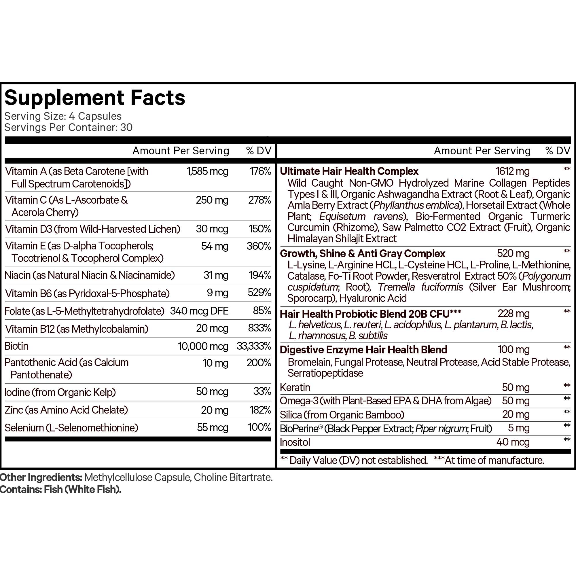 Hair Support Supplement with Biotin, Collagen, Keratin & Multivitamins – 120 Capsules
