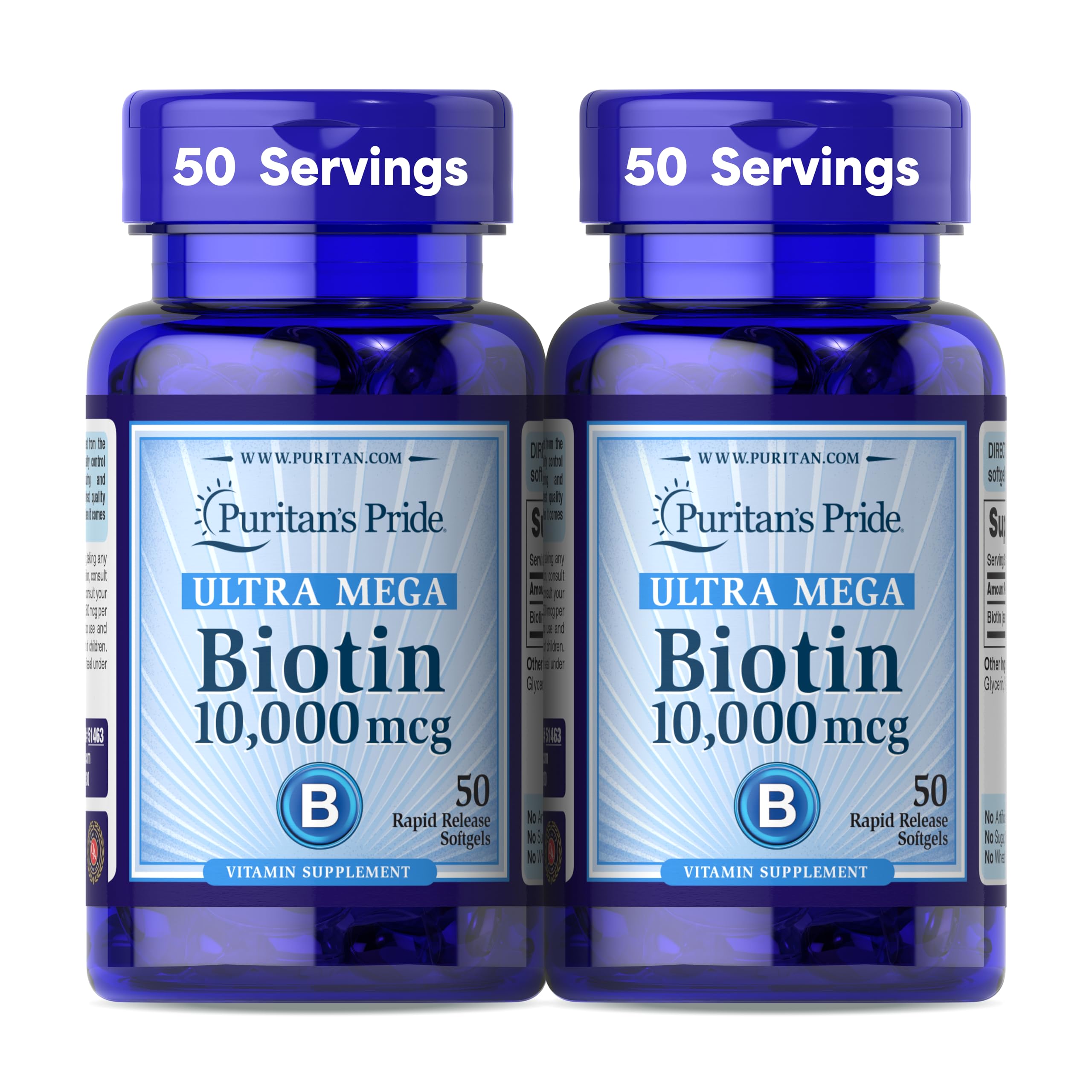 Puritan's Pride Biotin 10,000mcg - (2 Pack) 50 Softgels