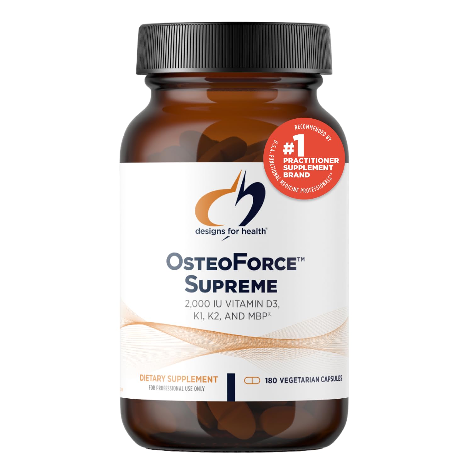 Designs for Health OsteoForce Supreme with MBP, Vit D 2000 IU 180 Capsules