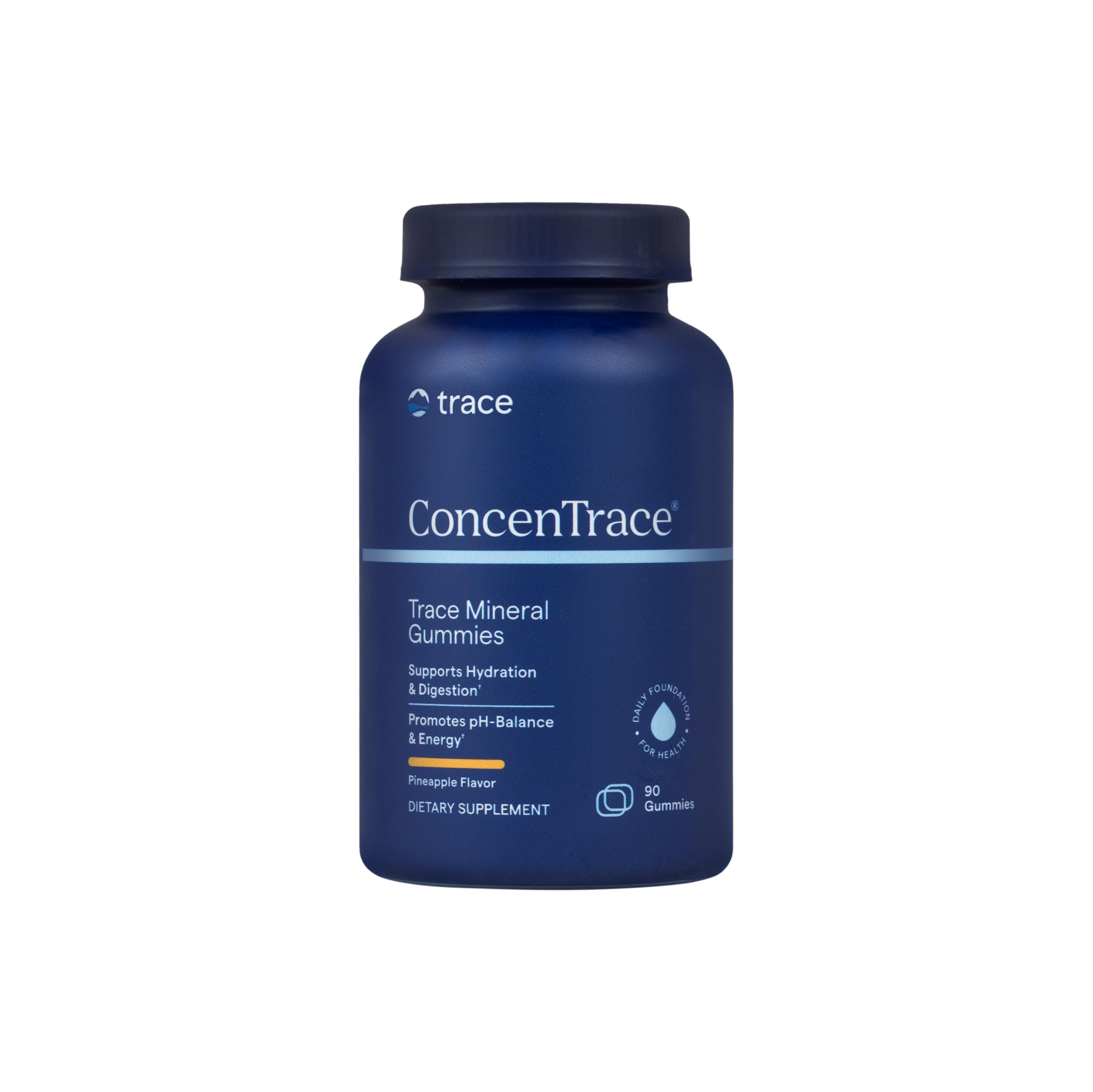 ConcenTrace Daily Trace Mineral Gummies provide your body with over 72 naturally occurring trace minerals, delivering comprehensive mineral support in an easy-to-enjoy gummy format. These vegan-friendly gummies are crafted to fit seamlessly into your wellness routine, helping to maintain your body's natural energy and support overall well-being. Formulated with natural pineapple flavor and made without gelatin, they’re a convenient and great-tasting way to supplement your daily intake of essential minerals. Ideal for those looking for a simple and effective mineral source, especially in active lifestyles or modern diets that may lack key nutrients.