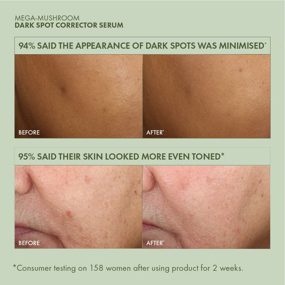 This dual-action serum has a targeted and defensive approach to the look of discoloration in skin. To target: Brightening Complex with Trametes Mushroom helps fade the look of dark spots for a more even-looking skin tone. To prevent: Reishi, Chaga and Licorice combination helps to intercept and relieve irritation.