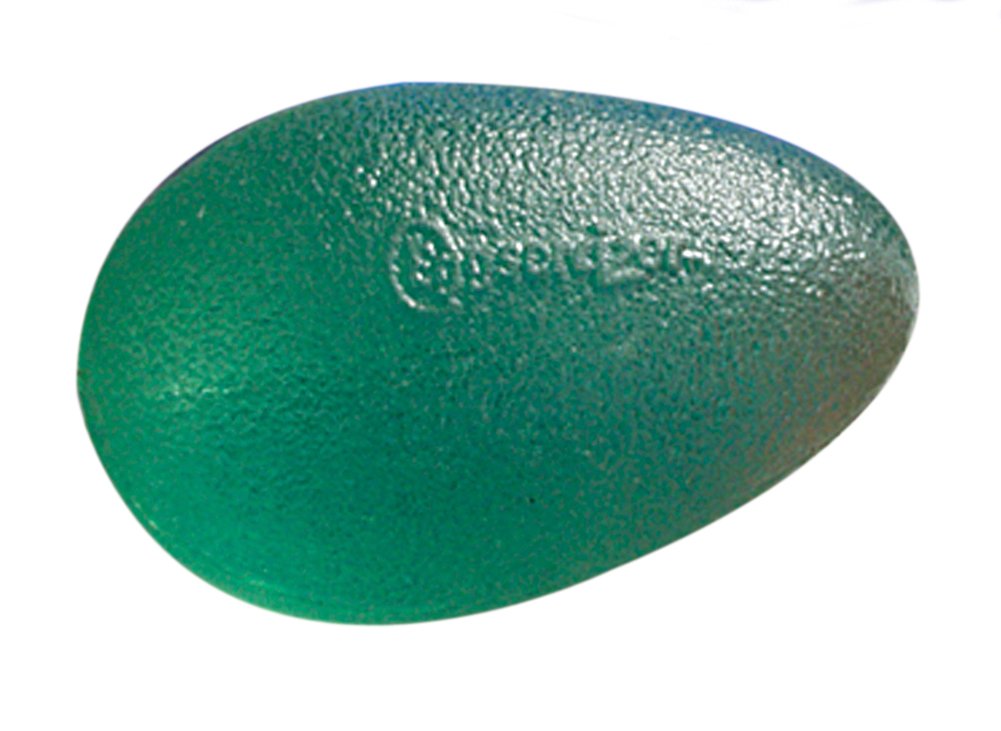 The DSS Eggsercizer Hand Exerciser (Green) is an ergonomically shaped hand therapy tool designed to fit comfortably in the palm. It is used to help strengthen the fingers, hand, and forearm, as well as to support range-of-motion and grip conditioning. The green resistance level is intended for users who require a specific firmness for their training or rehabilitation routine., Constructed from a pliable, gel-like material, this Eggsercizer provides consistent resistance when squeezed, pinched, or manipulated in different directions. Its compact size allows for easy use at home, in the office, or during supervised therapy sessions. The simple egg shape supports natural hand positioning and can be used for repetitive exercises tailored by a therapist or trainer., This hand exerciser is suitable for individuals looking to maintain or improve grip strength, including those focused on general wellness, fitness, or physical therapy programs. It can be incorporated into warm-up, cool-down, or daily mobility routines. Users should follow the guidance of a healthcare or rehabilitation professional for appropriate exercise selection and intensity.