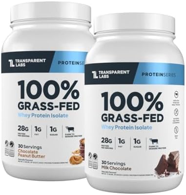 Transparent Labs Grass-Fed Whey Protein Isolate (30 Servings, Chocolate Peanut Butter) & Grass-Fed Whey Protein Isolate (30 Servings, Milk Chocolate)