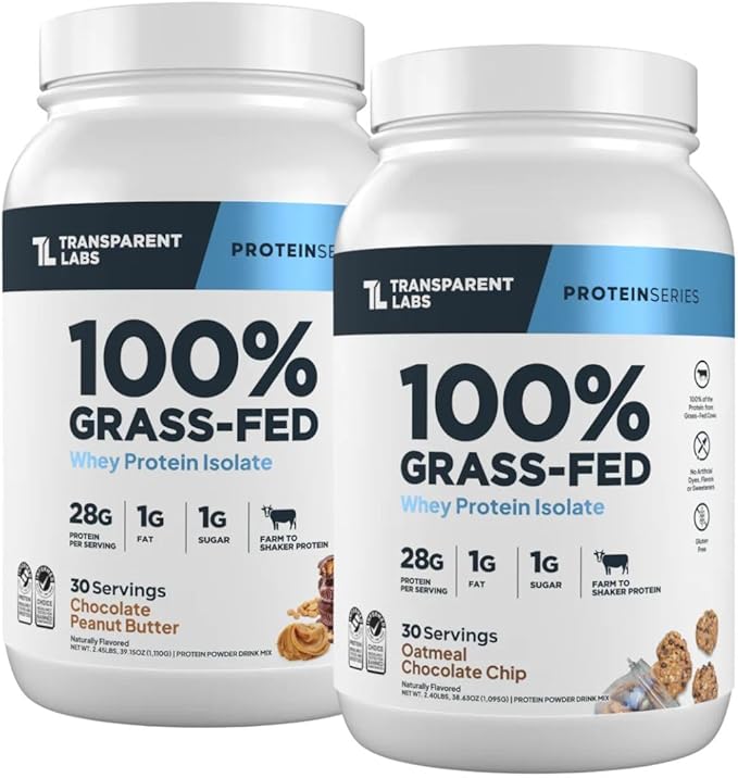 Transparent Labs Grass-Fed Whey Protein Isolate (30 Servings, Chocolate Peanut Butter) & Grass-Fed Whey Protein Isolate (30 Servings, Oatmeal Chocolate Chip Cookie)