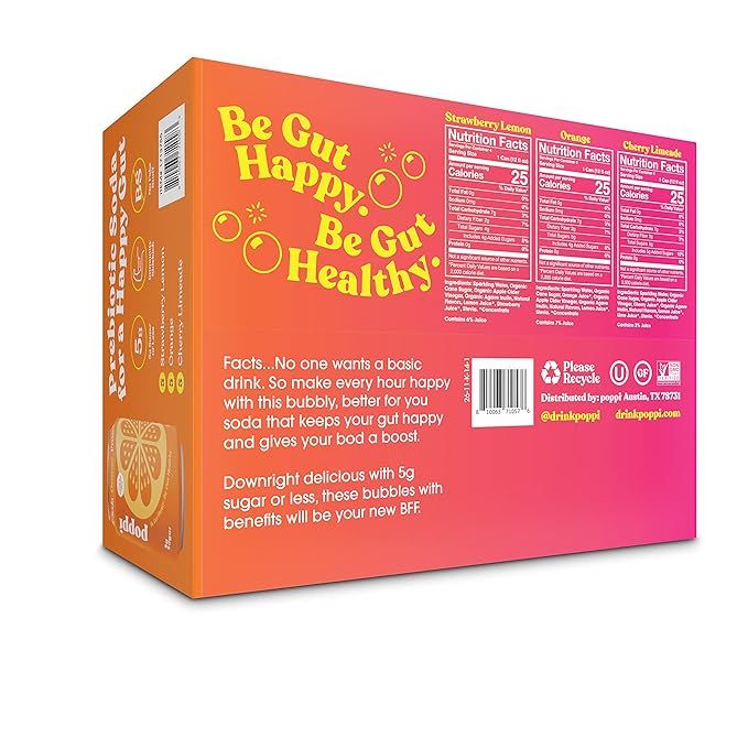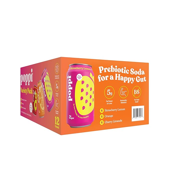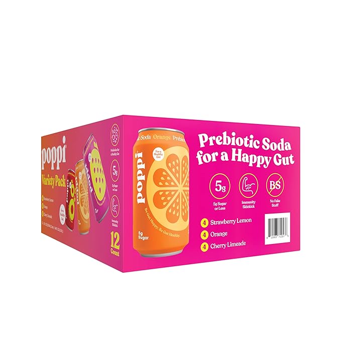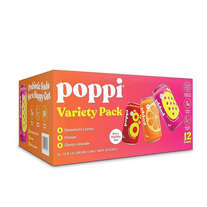 poppi is designed for those seeking a better-for-you alternative to traditional sodas without sacrificing flavor. It appeals to health-conscious individuals looking to reduce sugar intake while enjoying a fizzy, flavorful beverage. The variety pack format allows you to explore different fruit flavors throughout your day, whether as a refreshing drink on its own or as a mixer for beverages. All poppi flavors are gluten-free certified through the Gluten-Free Certification Organization and Non-GMO Project Verified.