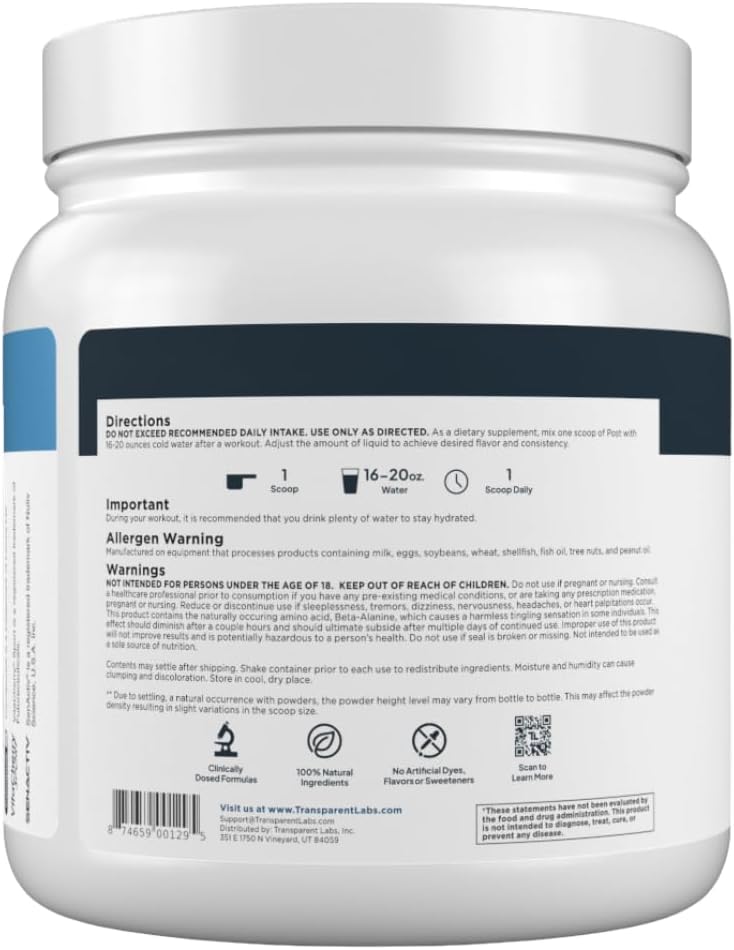 Transparent Labs Post Post-Workout Recovery Supplement 30 Servings