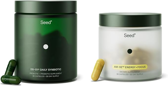 Seed DS-01 Daily Synbiotic & AM-02 Energy + Focus Bundle - Probiotic and Nootropic Supplement - 30-Day Supply