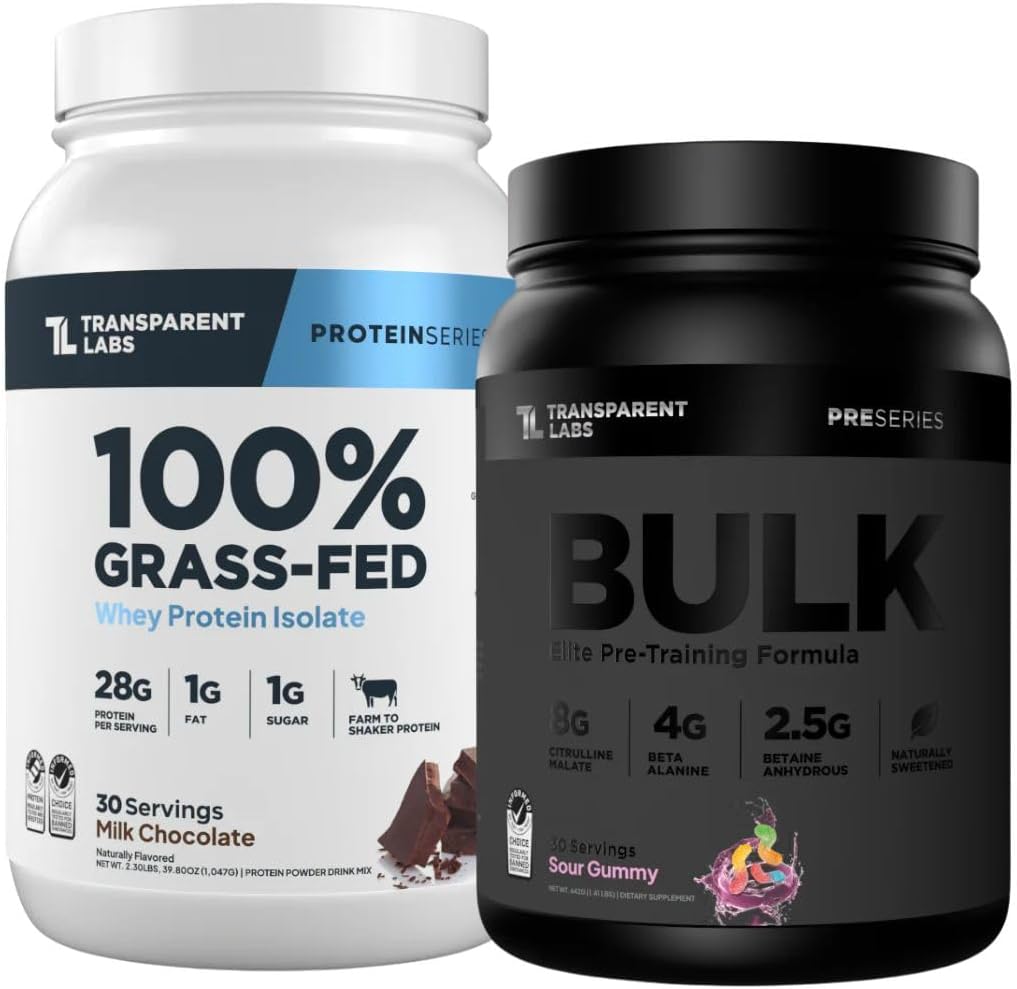 Transparent Labs Bulk Black Pre-Workout (30 Servings, Sour Gummy) & Grass-Fed Whey Protein Isolate (30 Servings, Milk Chocolate)