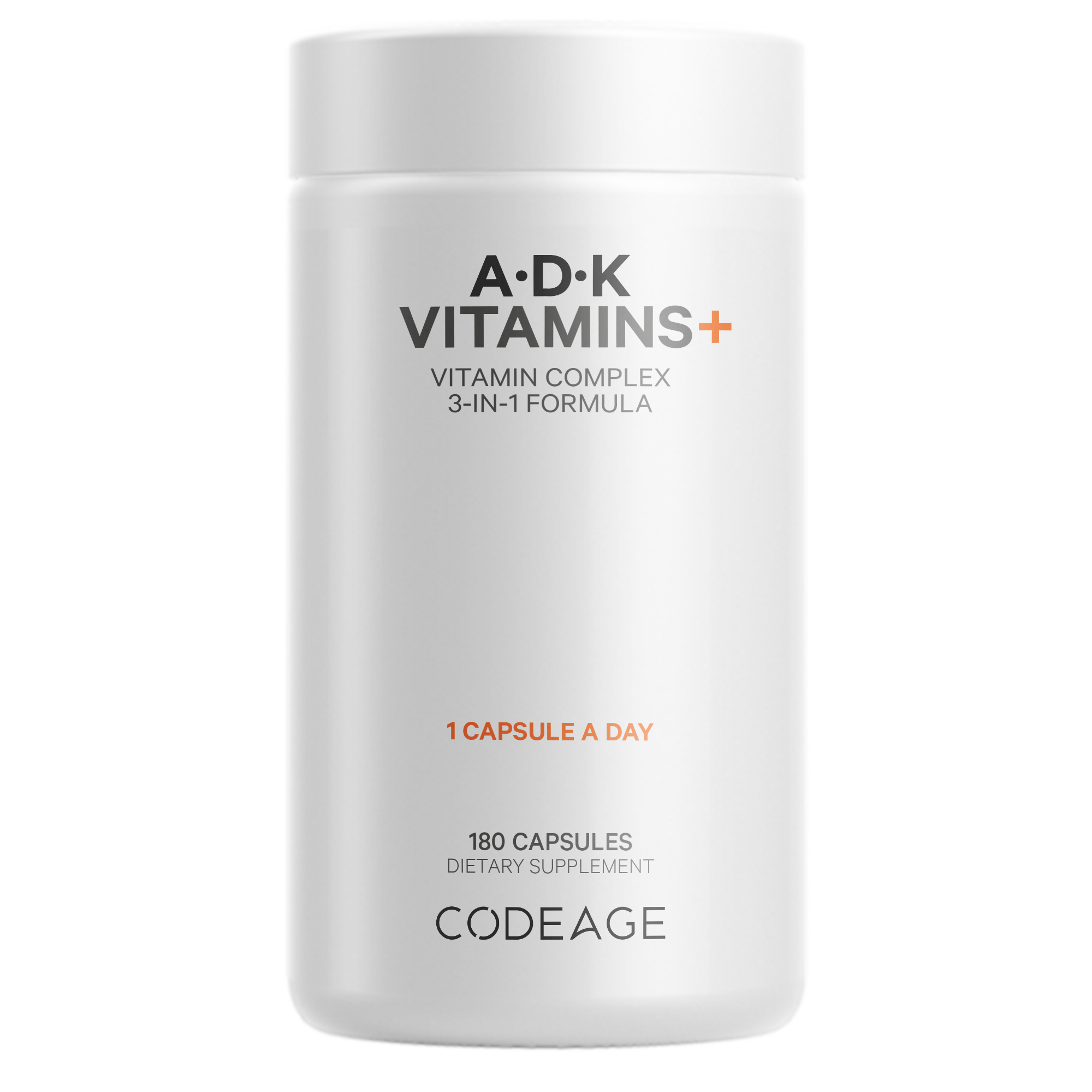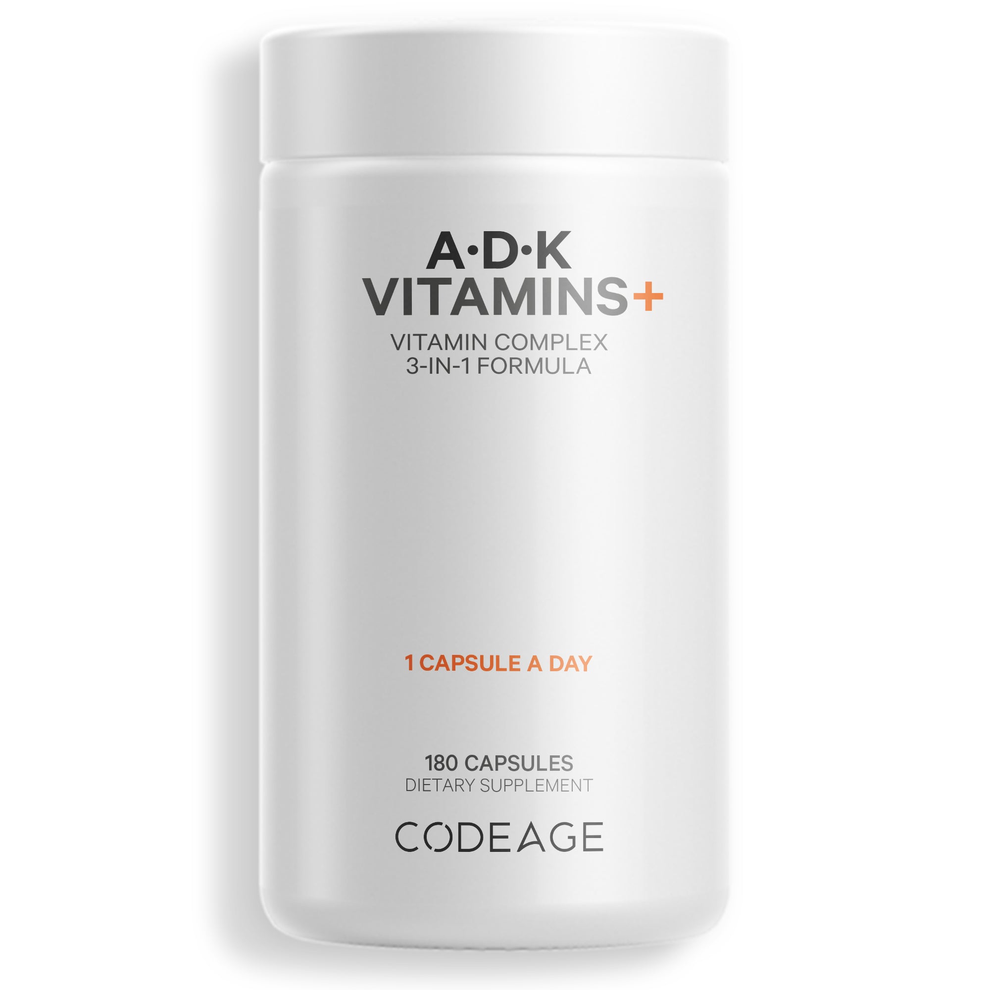 Codeage ADK Vitamin Supplement - 180 Capsules - Vitamins A, D3, K1 & K2 (MK4 + MK7) - 6-Month Supply - Non-GMO Formula