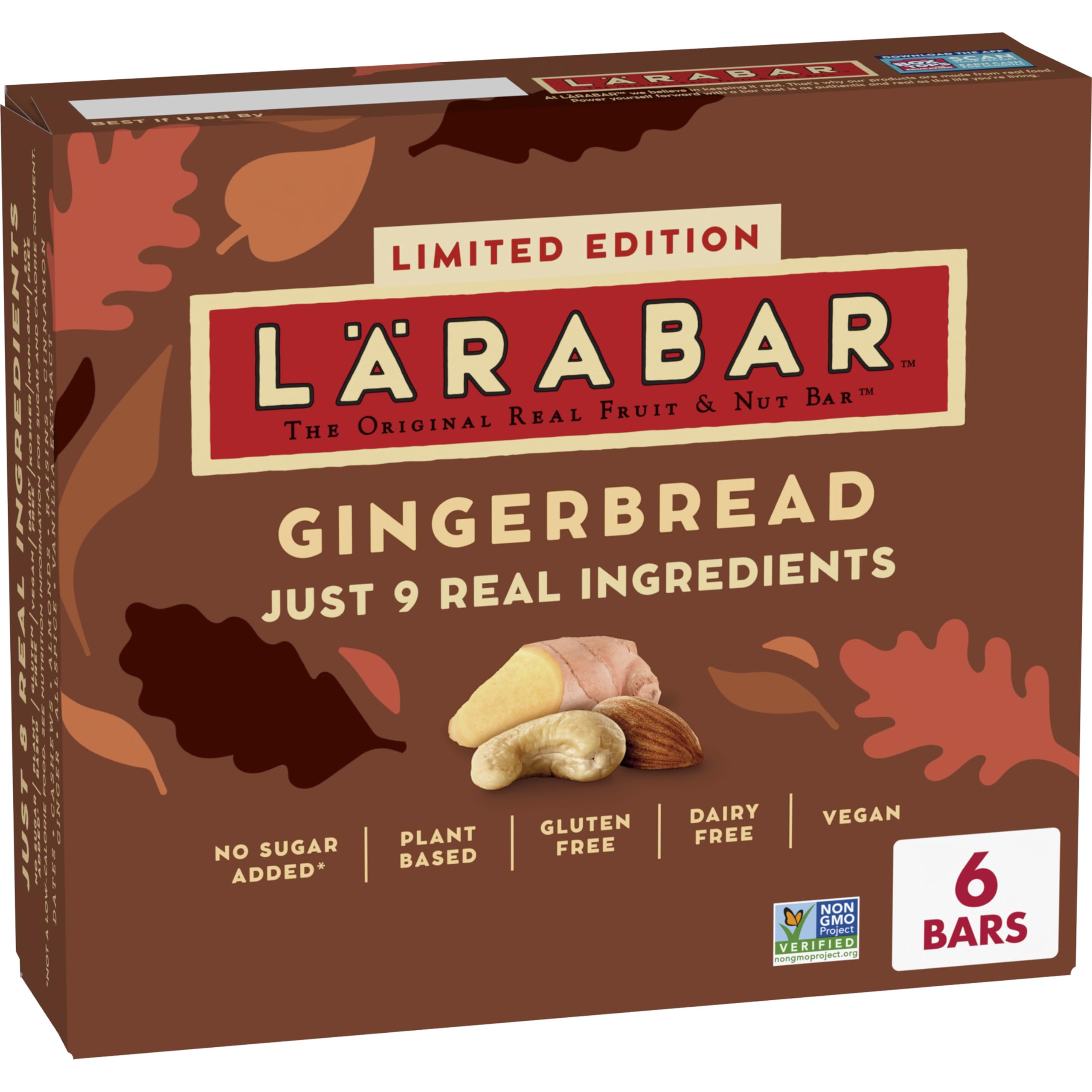Enjoy the warm, comforting flavor of the season with the Gingerbread LÄRABAR – a wholesome snack bar crafted from real ingredients and inspired by classic gingerbread flavor. With the natural sweetness of dates and a mix of crunchy cashews and almonds, this bar blends cinnamon, ginger, and allspice for a festive and satisfying snack. Each bite delivers a delightful balance of nutrition and taste, making it a convenient choice for those looking for a naturally flavored, plant-based treat. Perfect for enjoying as an on-the-go snack, a quick bite between meals, or a festive addition to your healthy routine.