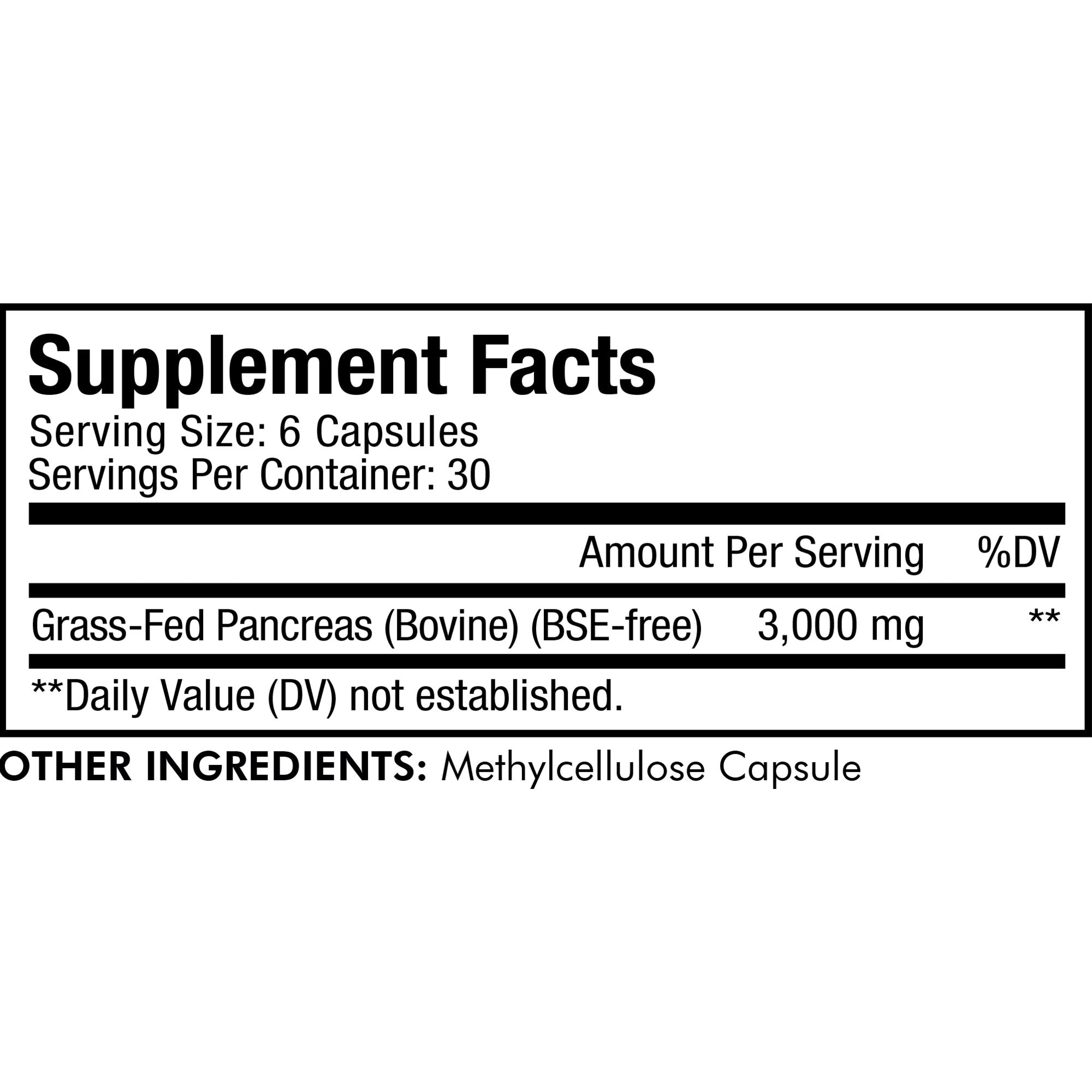 Grass-Fed Beef Pancreas Supplement – Freeze-Dried, Non-Defatted, 3000mg – 180 Capsules