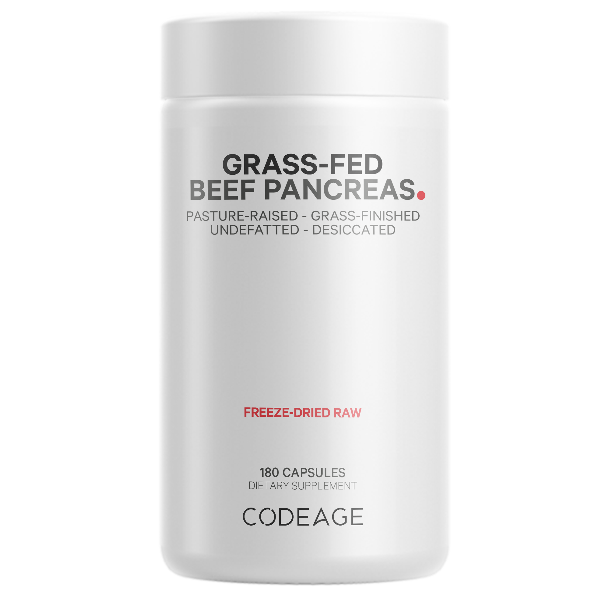 Support your wellness routine with Codeage Grass-Fed Beef Pancreas Supplement, delivering 3,000 mg of nutrient-rich bovine pancreas per serving. Sourced from pasture-raised, grass-fed cattle in Argentina, this premium formula is carefully freeze-dried and non-defatted to help retain the natural integrity of the nutrients found in pancreas tissue.