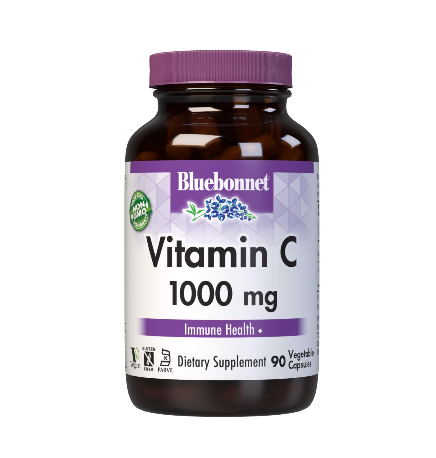 Bluebonnet Vitamin C 1000 mg is a high-strength vitamin C supplement delivered in convenient vegetable capsules. Vitamin C is known for its antioxidant properties and its role in supporting normal immune function. This formula is designed for those seeking a straightforward way to add a meaningful amount of vitamin C to their daily routine., Vitamin C helps protect cells from oxidative stress and contributes to normal collagen formation, which is important for skin, bones, and blood vessels. Providing 1000 mg per capsule, this supplement offers a concentrated dose in a simple, single-ingredient format. The use of vegetable capsules and the absence of common allergens make it suitable for a wide range of dietary preferences. Its soy free, gluten free, non-GMO, dairy free, kosher certified, and vegan profile reflects a focus on clean formulation., This product is suited for adults looking to support everyday wellness, particularly those focused on immune health and antioxidant intake. It can fit into the routines of individuals with gluten-free, dairy-free, or plant-based lifestyles. As with any supplement, individuals with medical conditions or those taking medications should consult a healthcare professional before use.