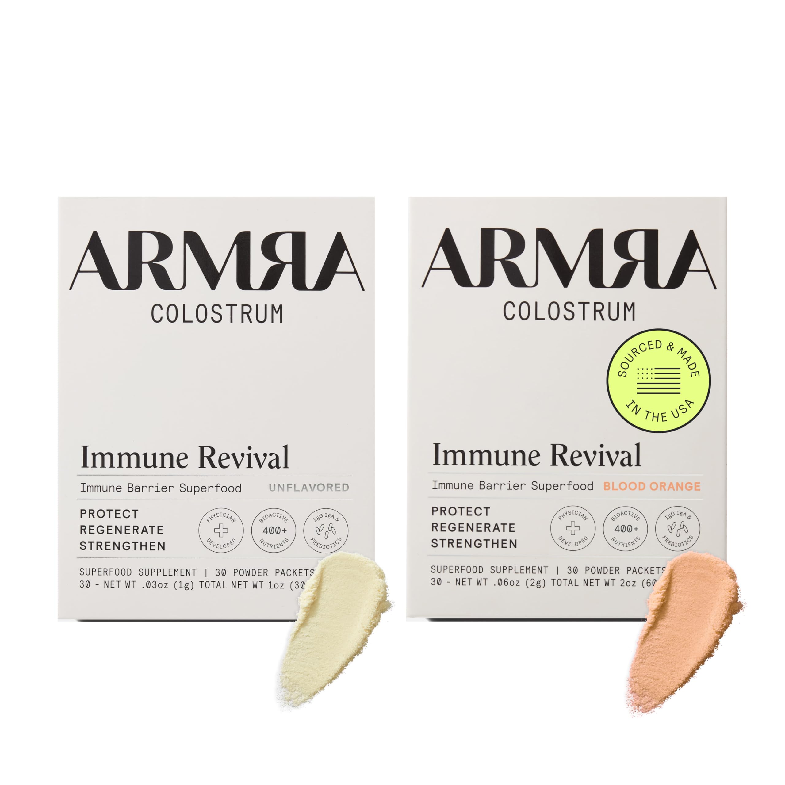 Colostrum Immunity Support Powder – 60 Servings Bundle (Blood Orange & Unflavoured)