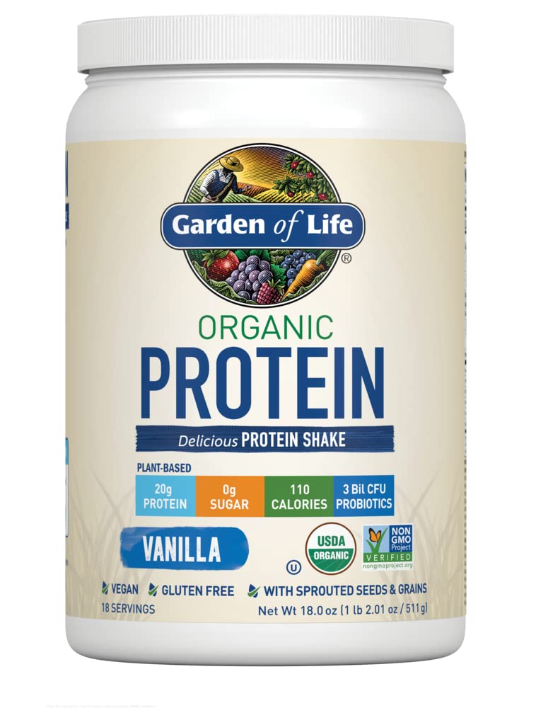 Garden of Life Organic Protein Shake Powder is a plant-based, vanilla-flavored protein designed for those seeking a clean, dairy-free option. Made with USDA Organic ingredients, it provides a convenient way to add vegan protein to your daily routine. This formula supports general wellness and can be mixed into shakes or smoothies., Because it is plant-based and certified organic, this protein powder avoids common animal-derived ingredients and synthetic agricultural inputs. Being gluten free makes it suitable for individuals who need to avoid gluten, and the absence of artificial colors appeals to those looking for a more natural ingredient profile. The vanilla flavor offers a familiar taste that can be easily combined with water or plant milks., This product is ideal for vegans, vegetarians, and anyone looking for an organic, plant-based protein source to support their active lifestyle or general wellness. It is especially suitable for people who prefer gluten free options and want to avoid artificial colors. As with any supplement or functional food, those with medical conditions or on medication should consult a healthcare professional before use.