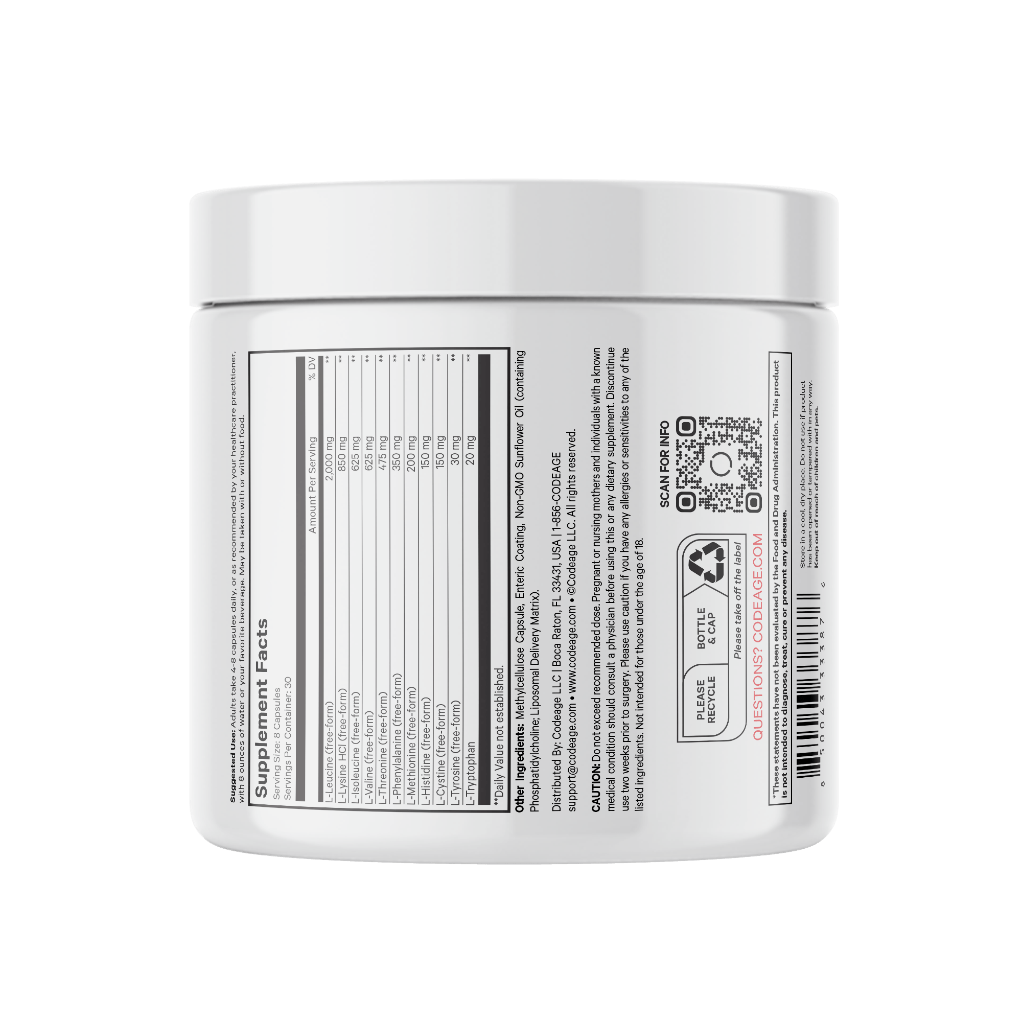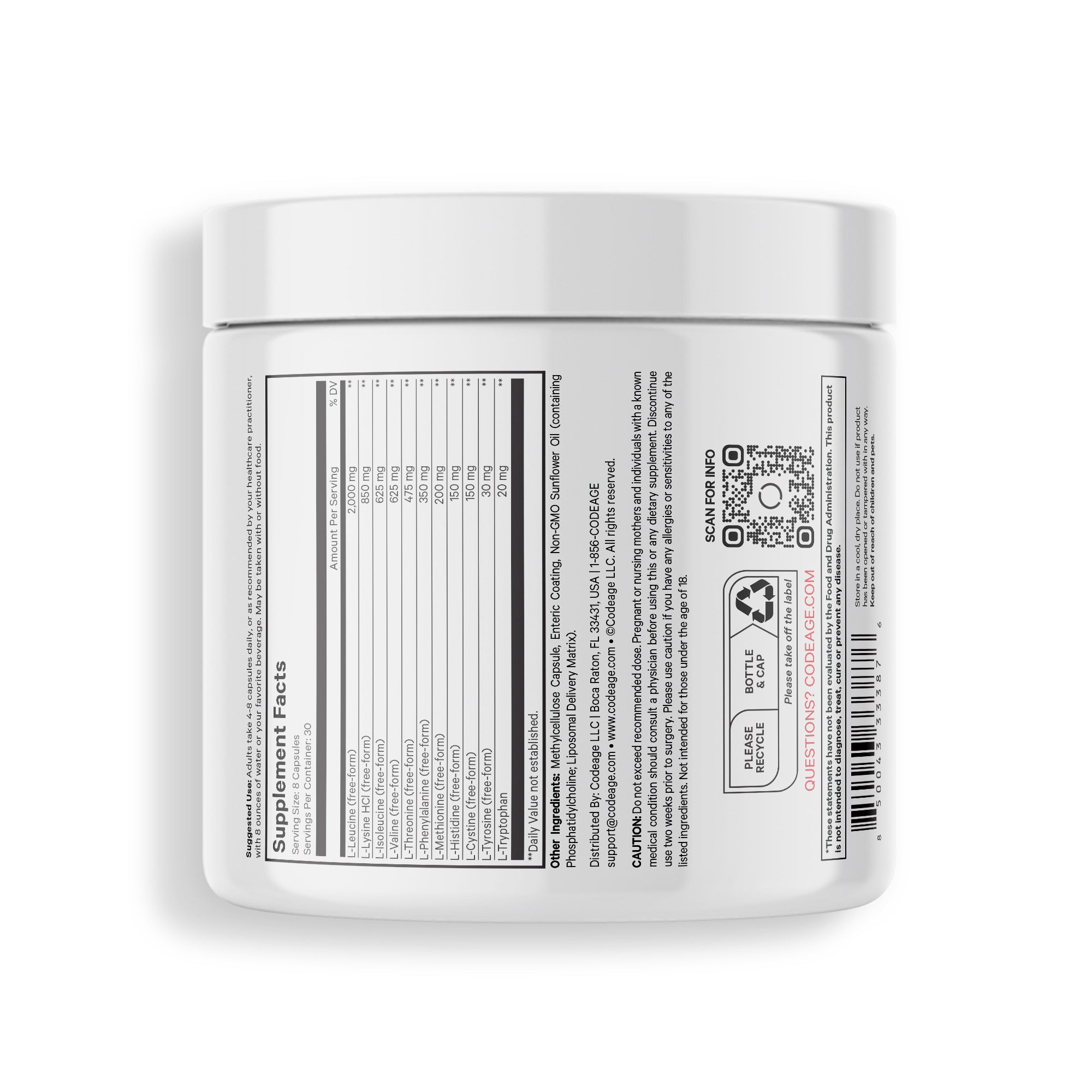 Support your fitness and wellness goals with Codeage Multi Amino+ BCAA & EAA Supplement – a comprehensive blend of all nine essential amino acids, delivered in a convenient capsule format with advanced liposomal delivery for optimal absorption. Designed for active individuals, this vegan and plant-based formula combines both branched-chain amino acids (BCAAs) and essential amino acids (EAAs) to complement your daily nutrition, whether pre- or post-workout.