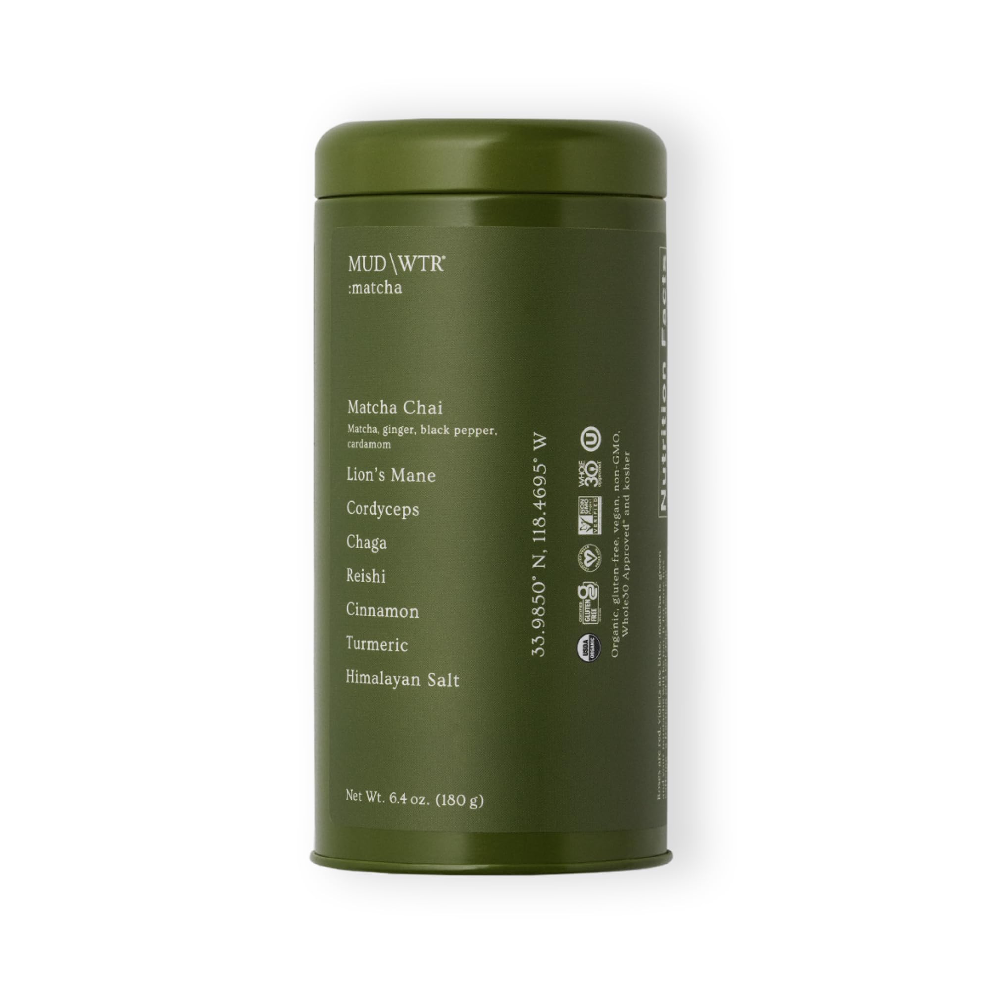Discover a balanced alternative to traditional caffeinated drinks with MudWtr Organic Matcha Blend. Thoughtfully crafted with organic matcha and a powerful blend of functional mushrooms and spices, this natural supplement supports energy, focus, and overall well-being without the jitters or crash. With significantly less caffeine than coffee, it offers a smoother boost to help you stay alert throughout the day. Featuring ingredients like Lion’s Mane, Reishi, and Chaga, combined with cinnamon, turmeric, and cardamom, this mix brings together earthy flavors and functional benefits in every cup.
