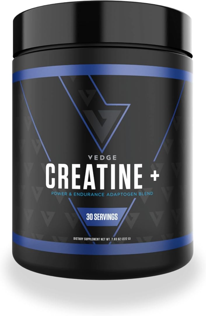 BRAIN FUNCTION: Creatine Monohydrate is an essential brain compound and has shown to improve cognitive function and brain performance. Brain creatine levels often correlate with increased recognition memory and reduced mental fatigue. SURPLUS OF ENERGY: Creatine Monohydrate & Peak02 can help to alleviate tiredness and fatigue. They both aid to create Adenosine triphosphate (ATP) which then becomes energy. Creatine can boost energy levels in athletes and keep stamina up when working out in hot temperatures. MUSCLE MASS & STRENGTH: Creatine+ contains a full clinical dosing of creatine monohydrate (5g) which has been shown to increase lean muscle mass & strength when used daily. SUPERIOR PERFORMANCE: Creatine Monohydrate & Peak02 can help improve athletic performance. Creatine helps increase your body's stores of phosphocreatine which then can produce new ATP during high-intensity exercise. CREATINE+: Vedge Creatine+ combines the highest-grade Creatine Monohydrate available with Peak02 - a trademarked ingredient with proven studies showing increases in strength, energy & performance. Together, Creatine Monohydrate & Peak02 work to enhance your gains, strength and increase your training capacity, taking your results to another level.