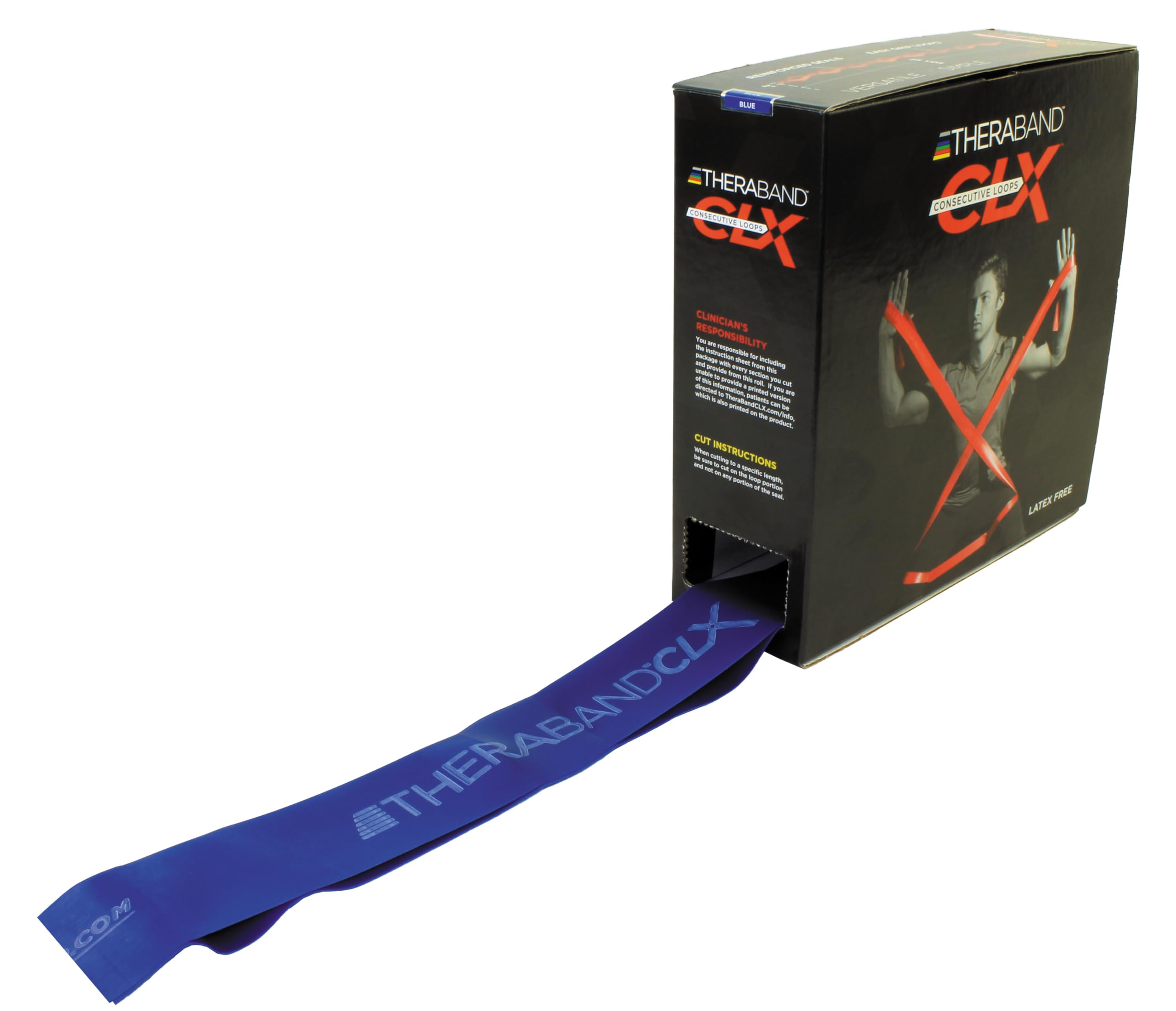 TheraBand CLX Extra Heavy Resistance Band with Loops is a portable training tool designed for home exercise, gym sessions, and on-the-go full body workouts. Featuring a chain of interconnected loops, it enables open and closed hand grips, no-grip-required movements, and the ability to hold objects under resistance. The extra heavy blue level is suited for users who need moderate to high resistance for fitness or rehabilitation., This resistance band works by providing measured elastic resistance that challenges muscles through the full range of motion. The unique looped design creates multiple secure hand and foot positions without tying knots, allowing simultaneous upper and lower body exercises and added resistance when combined with dumbbells. Made from non-latex material with no scent and no powder, it is suitable for users with latex sensitivities and for facilities that follow a no-latex policy. The free CLX app offers an exclusive exercise library to help structure effective training or rehab programs., TheraBand CLX Extra Heavy is ideal for athletes, fitness enthusiasts, and individuals in rehabilitation who want a compact alternative to heavy equipment. It suits people training at home, in clinics, gyms, or while traveling who need a versatile tool for strengthening and mobility work. Users with latex allergies or those training in latex-free environments can confidently incorporate this band into their routine.